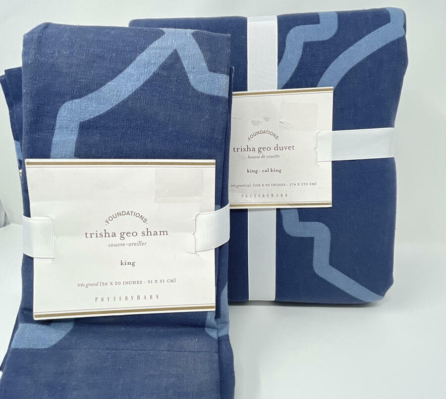 New~Pottery Barn~Trisha Geo Duvet Cover~Linen Cotton~ KING + 2 King Shams X X Click to Enlarge Click to Enlarge New~Pottery Barn~Trisha Geo Duvet Cover~Linen Cotton~ KING + 2 King Shams Brand New Duvet: King/Cal. King: 92" l x 108" w 2 King Shams: 20" h x 36" w 45% cotton and 55% linen, machine washable. Please read our return policy before you purchase: We take pride in our business, and we strive to do our best. We purchase brand new items and we do our best to give accurate descriptions and photos. If you have any questions about an item, please contact us through eBay prior to your purchase. We try our best to resolve any issues as fast as possible. If there are any issues with your item, please contact us right away. All items being returned must be returned with the price tag attached or new in package. No used items can be returned. When we receive the returned item, inspect it, and it is found to be in the same condition that we shipped it in (brand new, unused and in the original packaging) your refund will be given. The buyer is responsible for paying the return shipping. Thank you! Feedback: We strive to give you the best service. If you have any issues regarding your item, please contact us right away. Customer satisfaction is our priority. See my other listings for more great items! We accept MasterCard, Visa, Discover and American Express, securely and conveniently via PayPal. We will use the address listed on your PayPal address...so please make sure it is correct. We provide fast shipping! Your item will be shipped within 1-3 business days via Fed Ex or USPS priority mail. Fed Ex can NOT deliver to PO boxes, so please provide us with a physical street address. Once your item is shipped you will receive an email with your tracking number. We are HAPPY to combine shipping on items that can be combined. Free Shipping is excluded for HI, PR and AK. Please email us for shipping rates to HI, PR and AK. We do ship international through eBay's Global Shipping. txzj pxzj5515 txzj39
