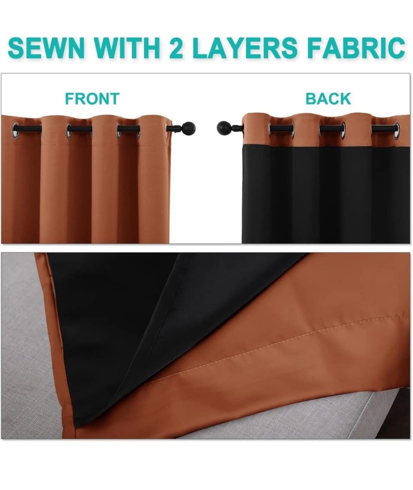 These are practically brand new, had them up for two weeks and can’t return. Burnt orange blackout curtains 55” width by 86” length. Selling on Amazon currently for $44.