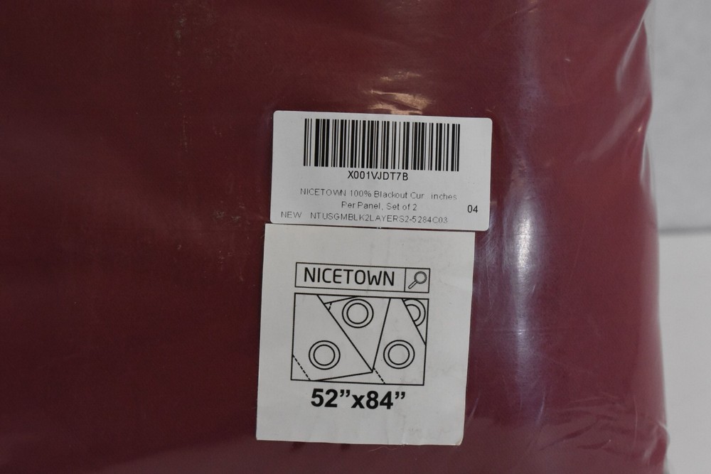 Nicetown Blackout Thermal Insulated Curtains Burgundy Red Set Of 2 52" x 84" Blackout Curtains with Black Liner Backing, polyester blend, grommets Why Shop with US? Customer Service is our #1 Priority Excellent Pricing Excellent Feedback Quality Assurance Fast Shipping Feedback If you are completely satisfied with your purchase please leave us positive feedback. If there is an issue with your order, please understand we are human and we do make mistakes. Please send us a message and give us a chance to resolve before returning or opening a dispute with eBay. Shipping Policy We will ship almost all items within 1 business day. All items ship from Kansas City MO and take 2-5 days depending on shipping service. On rare occasion, USPS or FedEx may delay a package. Please understand this is out of our control. If you order/pay before 12 PM CST we will try our best to get your package out same day. If you would like an express delivery option, please message us before purchasing, we can update the listing to reflect an express option. (Additional Shipping charges will apply) Disclaimer BI-STATE Sales is not sponsored by or affiliated with the brands associated with the products being sold. Furthermore, there is no guarantee or assumption that we can provide support or offer any warranty on this product after purchase. Bi-State Sales Copyright © Bi-State Sales