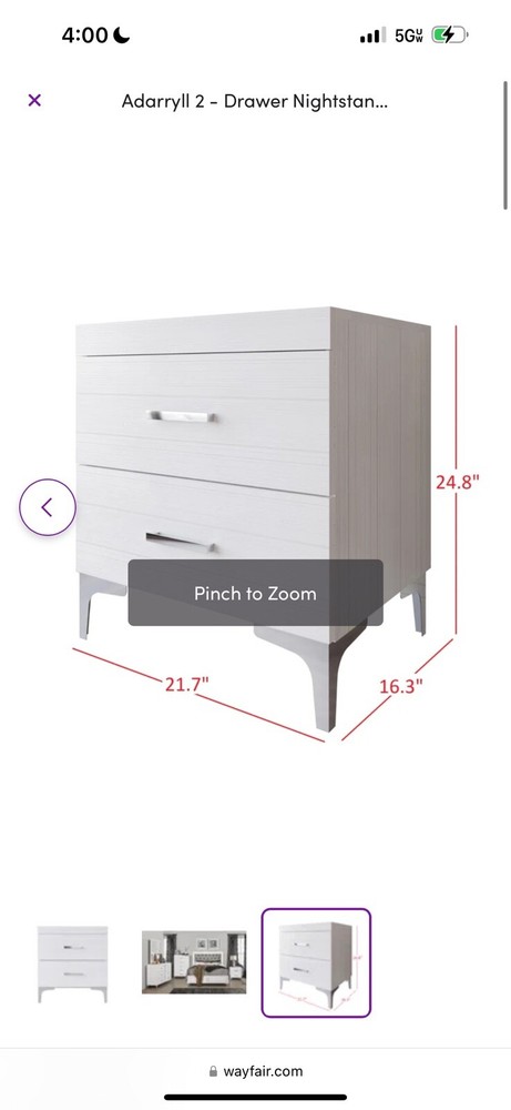 This Wade Logan nightstand is the perfect addition to any bedroom. With two spacious drawers, there is plenty of room to store your bedside essentials. The white color and brushed nickel drawer handles add a touch of modern elegance to your room. Measuring 24.8 inches in height, 21.7 inches in length, and 16.3 inches in width, this nightstand is the perfect size for any bed. It is also lightweight and easy to move around. Comes with 1 nightstand