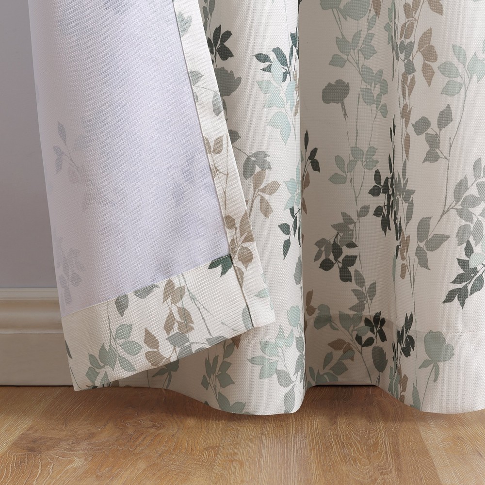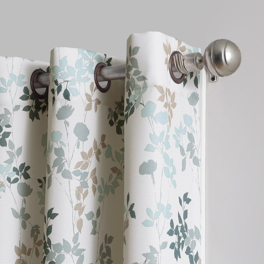 No. 918 Roelyn Curtain features a sihloutted leaf pattern and brings a casual textured style to your windows with a contemporary feel and handsome silver grommets for easy hanging. Machine wash cold on gentle cycle. Use non-chlorine bleach when needed. Tumble dry on low heat, using a cool iron as needed. Delicate floral print design Gently filters light while enhancing privacy Grommet top design allows for easy hanging on a standard curtain rod up to 1.5" in diameter Machine washable Perfect for the bedroom or living room Each panel sold separately
