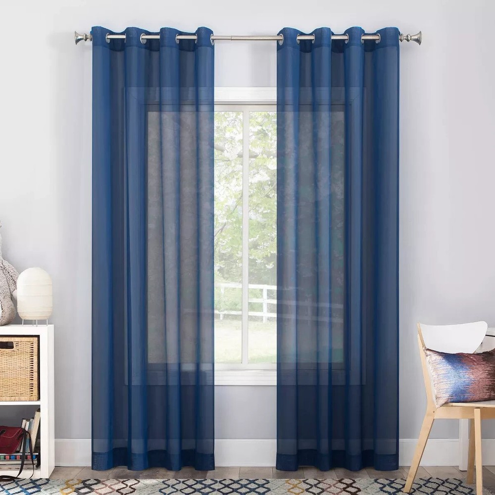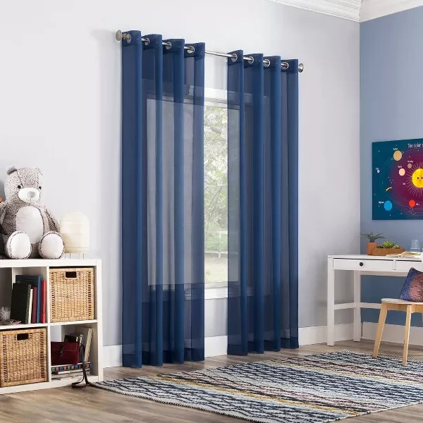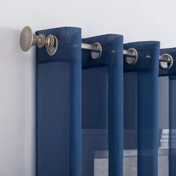 No. 918 Sheer Calypso Voile Grommet Curtain Panel 59" x 84", Blue Product information Highlights Classic sheer voile fabric Gently filters light while enhancing privacy Grommet top design allows for easy hanging on a standard curtain rod up to 1.5" in diameter Great for kids bedrooms or playrooms Machine washable Each panel sold separately Description No. 918 Calypso Curtain Panel inspires style with bright, bold multi-faceted colors. This fun colorful sheer softly diffuses natural light while enhancing the beauty of your home decor and adding privacy. Equipped with a built-in grommet for easy hanging on standard curtain rods up to ¾" in diameter. Sold as individual panels. Measure carefully before selecting your desired size and quantity. Rod not included. Machine wash cold on gentle cycle. Use non-chlorine bleach when needed. Tumble dry on low heat.