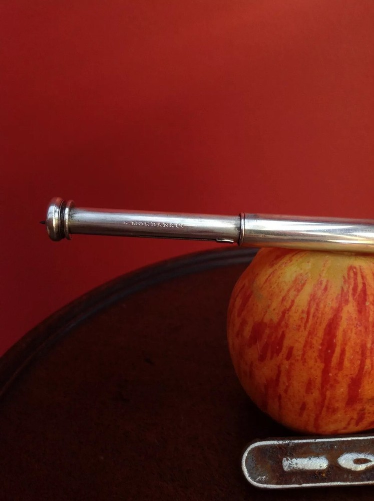 No.20620 Sampson Mordan London C1890 Large Propelling 2 DRAW pencil / dip Pen This product data sheet is originally written in English. New to market Item 20620 Sampson Mordan & Co solid STERLING SILVER Propelling 2 draw dip PEN AND PENCIL. This item appears in the 1898 S. Mordan catalogue on page 11 and is a version 290b Stunning rare Victorian Mechanical dip pen and pencil by sought after SAMPSON MORDAN. An excellent quality SOLID STERLING SILVER piece with a simple practical fluted column design. This is a PERFECT example in functional condition and made by highly respected silver and goldsmiths Sampson Mordan and Company of London. This is a rarer form due to it having the 2 draw pull out configuration. The propelling pencil is in perfect condition and has period rare vs lead and some period spares in a period metal store. It also has a perfect functioning dip pen with high quality nib. You will also receive a few spares to keep you going. Remember you also get a period tin of leads Who else offers this complete service ! Rarer version and a must to add to any pen or pencil collector as these are extremely hard to find. Museum quality. This is a very nice example labeled S Mordan & Co the writing is still perfectly readable no hallmarks but I can accurately date it to c 1890 tested for high quality silver. Item measures: 7cm long closed 17.5cm open on pencil 17cm open on pen 10mm or .25" inch approx thick Weighs a heavy 23.2 grams This is as good as it get folks, one for the serious collector. This is the pinnacle of pens and Sampson Mordan. You will not find a more perfect example Please view all my photographs carefully as these are as much part of the description as the writing. If you wish me to send you any other pictures or details feel free to ask. The last picture illustrates part of my collection of Sampson Mordan and is not included in the price but will be for sale soon. buy with confidence as you will not be disappointed. I also have a similar examples on my listings, so if you love Sampson Mordan you need to look at my other items for sale. If you want spotless then the high street is for you, but if you want a great antique that will appreciate in price with age then this is for you. Please make your best offer or buy at the stated price; offers are always considered and often accepted. Expert packing. Guaranteed safe delivery ...and 100% satisfaction! I offer a full 100 % no quibble full money back guarantee including postage if you are not entirely happy with any of my items I have for sale. I have 100 % positive feedback for over 12,400 transactions. You don't get this by messing people about. Iam a trusted honest reliable EBAYer. If you have any questions feel free to ask. Please look at all my other great Sampson MORDAN items I have for sale. I consider myself one of the leading sellers of Sampson MORDAN in the world. I have what must be considered one of the largest private collections with hundreds of key pieces sold and hundreds to be listed soon. I gladly offer combined postage. MARKS - HALLMARKS - HISTORY Sampson Mordan (1770-1843), apprentice and assistant of the mechanic John Bramah, established his own business in 1815. The first patent for a "metal pencil with an internal mechanism for propelling the graphite 'lead' shaft forward during use" was obtained in 1822 (his co-inventor was John Isaac Hawkins). In 1823 Mordan bought out the rights of Hawkins, entering his first mark as "smallworker" in London Assay Office on 9 June 1823 (SM oblong). In 1824 he entered in partnership with Gabriel Riddle, registering a new mark (SM.GR) in London Assay Office. The partnership with Riddle was dissolved in 1836 and he continued the business as S. Mordan & Co. Sampson Mordan died in 1843 and the business was taken over by his sons Sampson (Jr) and Augustus. They were later joined by Edmund George Johnson and Zachariah Watkins who retired in 1879. After the death of Sampson Mordan (Jr) his share of the business passed to his brother Augustus, joined as partner in 1890 by Harry Lambert Symonds. In 1898 the company was converted to a limited liability company under the name of S. Mordan & Co Ltd. In 1933 the distribution rights on the propelling pencil business were given to L. G. Sloan Ltd, and in 1941, following the destruction of the factory by enemy bombing, the patents were sold to Edward Baker. The firm went into voluntary liquidation in 1952. Between the 1820s and 1870s the firm obtained more of 160 patents for various mechanical pencils. The first spring-loaded mechanical pencil was patented in 1877 and a twist-feed mechanism was developed in 1895. In addition to pencils the firm had a large production line of small silver and gold items, most of them belonging to the type of "novelties" so popular at the end of the 19th/beginning of the 20th century. They were supplied to many retailers, including Asprey & Sons and the Goldsmiths & Silversmiths Co. Ltd. An excellent quality SOLID STERLING SILVER piece with a simple practical fluted column design. This is a PERFECT example in functional condition and made by highly respected silver and goldsmiths Sampson Mordan and Company of London. This is a rarer form due to it having the 2 draw pull out configuration. The propelling pencil is in perfect condition and has period rare vs lead and some period spares in a period metal store. Please look at all my other great Sampson MORDAN items I have for sale. I consider myself one of the leading sellers of Sampson MORDAN in the world. I have what must be considered one of the largest private collections with hundreds of key pieces sold and hundreds to be listed soon. I gladly offer combined postage. In addition to pencils the firm had a large producti Ink/ Lead Colour Black Modified Item No Vintage Collectable/ Vintage Brand Sampson Mordan & Co Material Silver Country/Region of Manufacture United Kingdom Sub-Type Mechanical Pencils Type Pencils