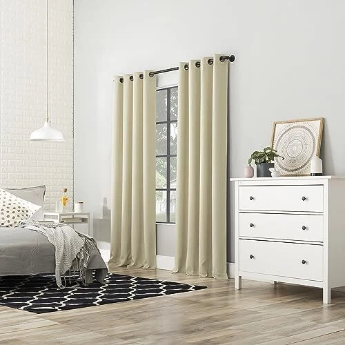 Return Policy Fast Delivery Trusted seller Nordic 2-Pack Theater Grade Noise Reducing Extreme 100% Blackout Grommet Curtain Panel Pair, 52" x 96, Cream Off-White Product Description 100% Polyester Extreme Blackout technology blocks out 100% of outside light Energy Efficient design reduces energy lost through your windows by up to 50% Thermal properties help keep summer heat and winter chill out of your home Noise reduction by up to 45% helps you get a sounder, more uninterrupted sleep Includes 2 grommet curtain panel made from machine washable material Pair includes 2 panels Shipping Returns Payment Shipping Shipping is FREE to all addresses other than APO/PO boxes in the lower 48 states. All our stock ships from US-based warehouses. Shipped via USPS or UPS (depending on location and package weight) Unless stated otherwise, all orders will ship within 24-72 hours of your payment being processed. Check our feedback to see the great reviews of FAST shipping we offer. Returns Seller does not accept returns Payment We currently accept payment via eBay managed payments only. Once payment is cleared, we will dispatch your shipment within 1-3 business days. Please refer to the "Shipping" tab for more information regarding shipping speed to your destination.