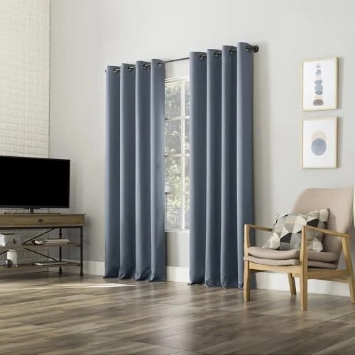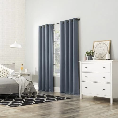 Return Policy Fast Delivery Trusted seller Nordic 2-Pack Theater Grade Noise Reducing Extreme 100% Blackout Grommet Curtain Panel Pair, 52" x 96", Denim Blue Product Description 100% Polyester Extreme Blackout technology blocks out 100% of outside light Energy Efficient design reduces energy lost through your windows by up to 50% Thermal properties help keep summer heat and winter chill out of your home Noise reduction by up to 45% helps you get a sounder, more uninterrupted sleep Includes 2 grommet curtain panel made from machine washable material Pair includes 2 panels Shipping Returns Payment Shipping Shipping is FREE to all addresses other than APO/PO boxes in the lower 48 states. All our stock ships from US-based warehouses. Shipped via USPS or UPS (depending on location and package weight) Unless stated otherwise, all orders will ship within 24-72 hours of your payment being processed. Check our feedback to see the great reviews of FAST shipping we offer. Returns Seller does not accept returns Payment We currently accept payment via eBay managed payments only. Once payment is cleared, we will dispatch your shipment within 1-3 business days. Please refer to the "Shipping" tab for more information regarding shipping speed to your destination.