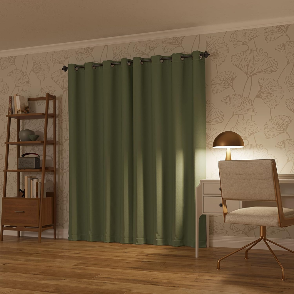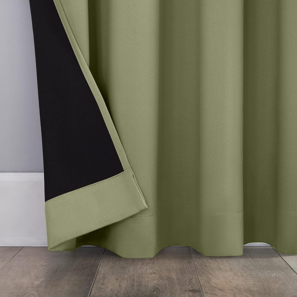 These curtains are amazing! The blackout is total—no light sneaks through, and they even help muffle street noise. The sage green color is soft and stylish, perfect for any room. The grommets slide smoothly, and the fabric feels durable. Super easy to hang, and they arrived quickly. Definitely worth it for better sleep and privacy!