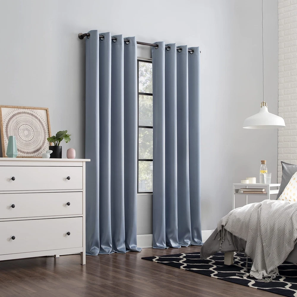 Love these blackout curtains—they block light completely and keep my room cozy and quiet! The grommets make them easy to hang, and the fabric feels high-quality. Perfect for sleeping in or movie nights, plus they look sleek and modern. Definitely worth it!