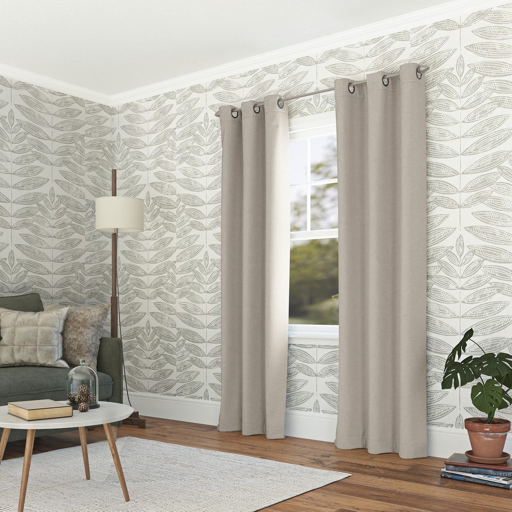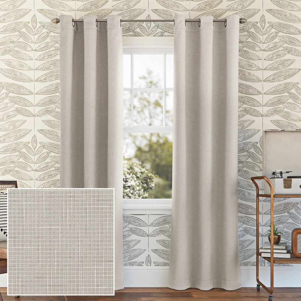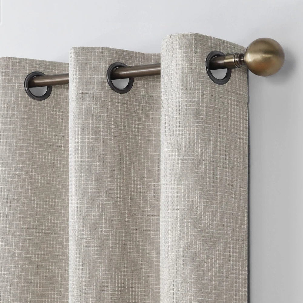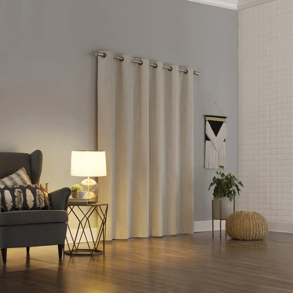 With a grid textured design and added slub detail, Norman curtains provide the ultimate in light blocking technology to keep out even the harshest of light. Total Blackout technology is laboratory tested to block out 100% of light, reduce outside noise by up to 35%, and decrease energy lost through your windows by up to 35%. Comfort is optimized with thermal properties that help keep summer heat and winter chill out of your home. built-in metal grommets allow for easy slide-through installation on curtain rods up to 1.5" in diameter. Hang in your entertainment room to eliminate screen glare and reduce distracting outside noise, or in your bedroom for enhanced privacy and a sounder, more uninterrupted sleep. Grid textured design with added slub detail Thermal Total Blackout technology blocks out 100% of outside light Thermal properties help keep summer heat and winter chill out of your home Noise reduction by up to 40% helps you get a sounder, more uninterrupted sleep Built-in metal grommets fit curtain rods up to 1 ½" in diameter
