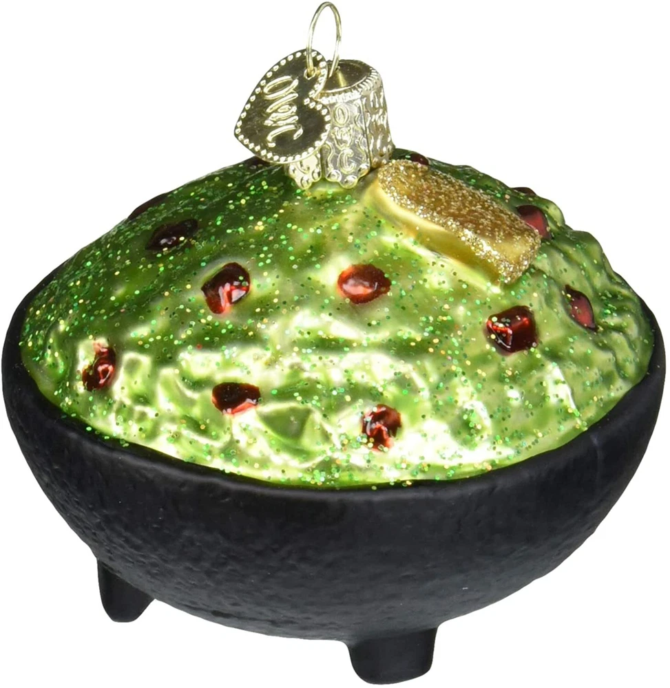 BRAND NEW with Tags OLD WORLD CHRISTMAS GAUCAMOLE BLOWN GLASS FRUIT DIP CHRISTMAS ORNAMENT 32320 Old World Christmas Creations Each figural glass ornament produced by Old World Christmas is hand crafted in age-old tradition using the same techniques that originated in the 1800's. Molten glass is mouth-blown into finely carved molds made exclusively for Old World Christmas, before a hot solution of liquid silver is poured inside. The ornaments are then hand-painted and glittered in a series of labor-intensive steps to achieve the beautiful creations. This heavenly fruit dip was invented by the Aztecs in Mexico, and can be as simple as mashing ripe avocados & tomatoes with sea salt. Over 45 million pounds of avocado will be eaten on Super Bowl Sunday. Apollo 11 astronauts brought guacamole & chips with them into space. Pass the guac! Some Distinctive Features of this Beautiful Ornament: Dimensions: 2.25 X 2.75 X 2.75 (HxLxW) inches A Gold Metal Heart attached to the Gold Catch Hanging Hook and bearing the OWC Trademark Logo Certifies this is an Old World Christmas Original Beautifully Hand Painted and Detailed Throughout with Glitter Finished on all Sides Makes a Great Gift and Ornament for your Favorite Fan of Guacamole ! OWC Gift Box Included !