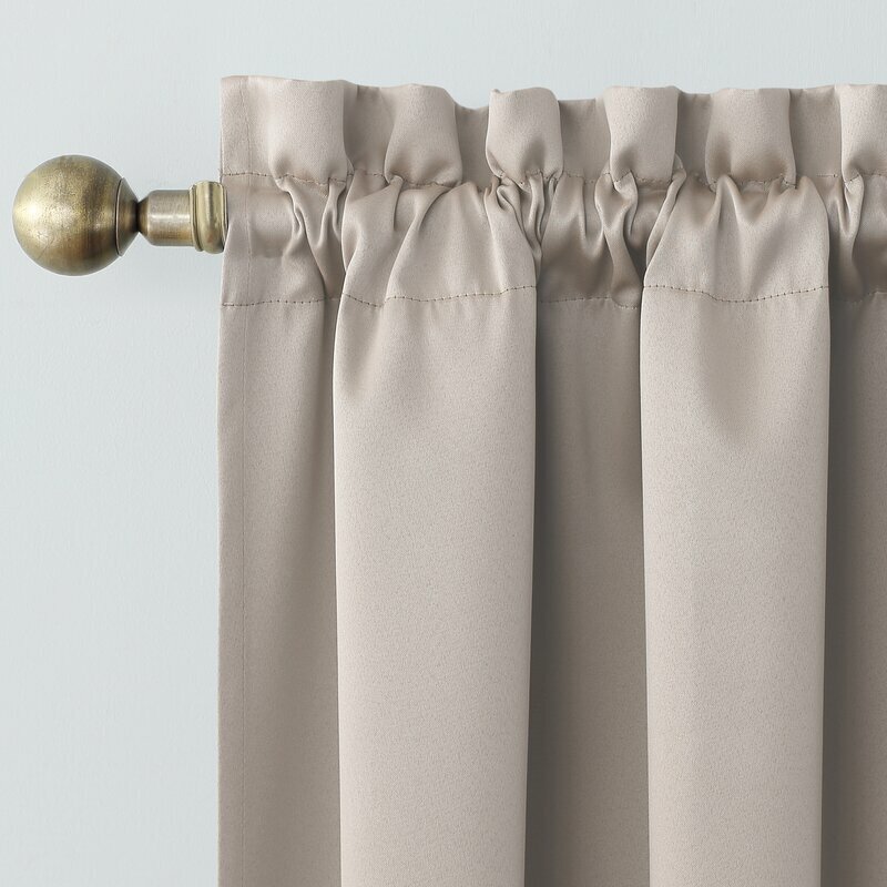 ONE Sun Zero Oslo Curtain Panel Size 52" wide x 63" long New in packaging / MSRP $39.99 Sun Zero Panel provides the ultimate in light blocking technology to keep out even the harshest of light while bringing an elegant urban sophistication to any room of your home. Sun Zero Extreme Blackout technology is laboratory tested to block out 100% of light, reduce outside noise by up to 35%, and decrease energy lost through your windows by up to 50%. Comfort is optimized with thermal properties that help keep summer heat and winter chill out of your home. Hang in your entertainment room to eliminate screen glare and reduce distracting outside noise, or in your bedroom for enhanced privacy and a sounder, more uninterrupted sleep. Sold as individual panels. Measure carefully before selecting your desired size and quantity. Rod not included. Machine wash cold on gentle cycle. Use non-chlorine bleach when needed. Tumble dry on low heat, using a cool iron as needed.