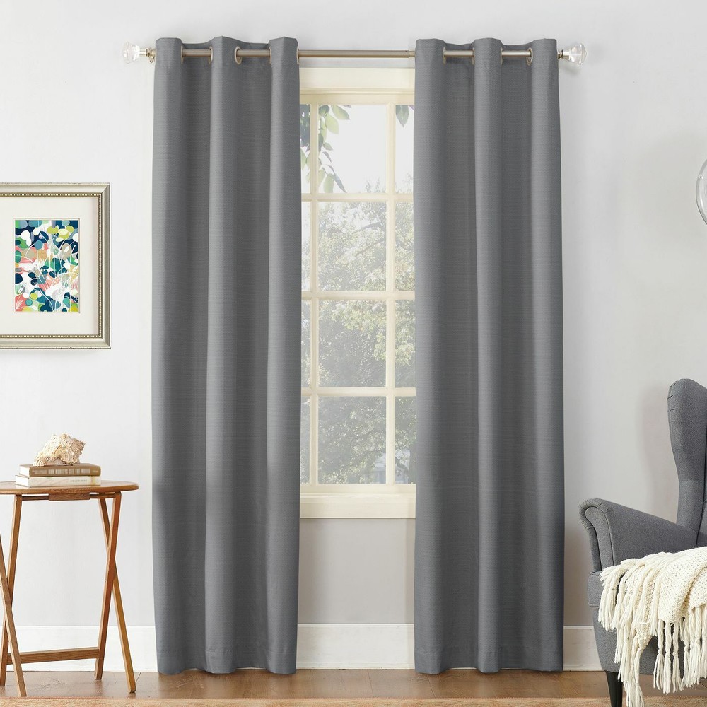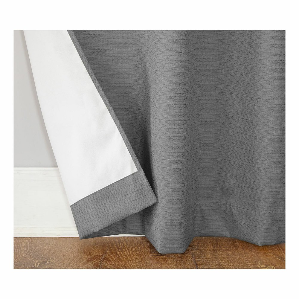 New 95" Length x40" Width ONE Panel Cooper Textured Thermal Insulated Grommet Top Room Darkening Curtain Panel Gray by Sun Zero Specifications Number of Pieces: 1 Panel Dimensions (Overall): 95.0 Inches (L), 40 Inches (W) Textile Material: 100% Polyester Includes: 1 Curtain Panel Indoor/Outdoor: Indoor Features: Energy Efficient, Thermal Insulated, noise reduction Backing Material: Polyester Textile construction: Jacquard Hanging style: Grommet Top Light Filtration: Room Darkening
