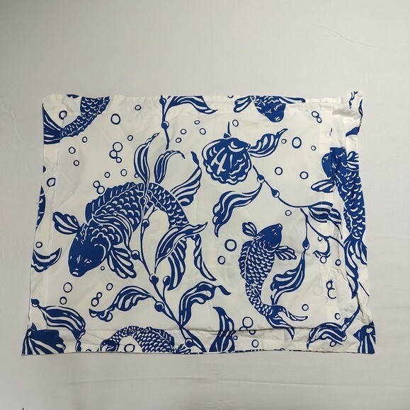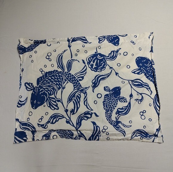 ONE singular Pottery Barn white and blue koi fish pattern standard pillowcase or sham. 100% cotton Overall great shape.