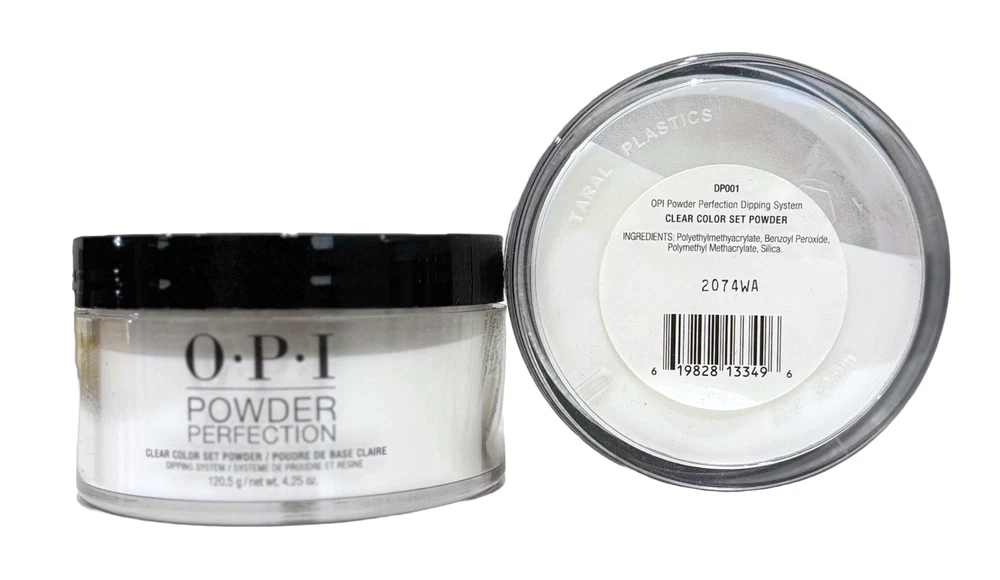 Item Details OPI Powder Perfection Dip Powder Clear Color Set Powder - DP001 4.25 oz Large Size 100% Authentic. B rand new. Creates a protective barrier to maintain nail vibrancy during filing and contouring. Formulated to complement all OPI Powder Perfection shades. Powder Perfection is a fast-application, odor-free acrylic alternative that ensures a clean-air environment and delivers a gel-like shine. Made in the USA. Click here for the OPI Dual Cure LED Nail Lamp Click here for the OPI Ac rylic Polish Organizer Rack visit our eBay store for more great deals! Terms of Sale Payment: We accept Paypal, Visa, Mastercard, Discover & American Express Returns: W e stand behind every product we sell with a 100% product guarantee. Please contact us if you are not satisfied with your purchase within 30 days from the delivered date. R eturned item must be in original condition, including the box, stickers/labels, packaging, and all accessories. Restocking fee of 20-50% will be applied if these conditions are not met. A ny return without our authorization will not be accepted. A ll return packages should be accompanied by a tracking or delivery confirmation number back to our warehouse. Shipping Information We offer FREE SHIPPING on all orders in the 48 contiguous United States! Shipping to Alaska or Hawaii will require additional charges. We ship all orders the same day if order is placed by 2pm PST. Please make sure you enter the correct shipping address. We will not make any changes to the shipping address once you place an order . Disclaimer: Handle and store product with care per manufacturer instructions. Use at your own risk. Seek professional attention if needed. SuperCheapDealz, Inc . is not responsible or liable for any type of improper usage or negligence of this product, which may cause damage or harm. Use this product for its intended use only. SuperCheapDealz, Inc. is not responsible for changes of manufacturing components, specifications or color which may differ from literature, websites or other promotional items. Image may vary from different types of screens. Shipping will comply with regulations and that it will be shipped ORM-D .