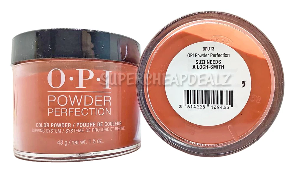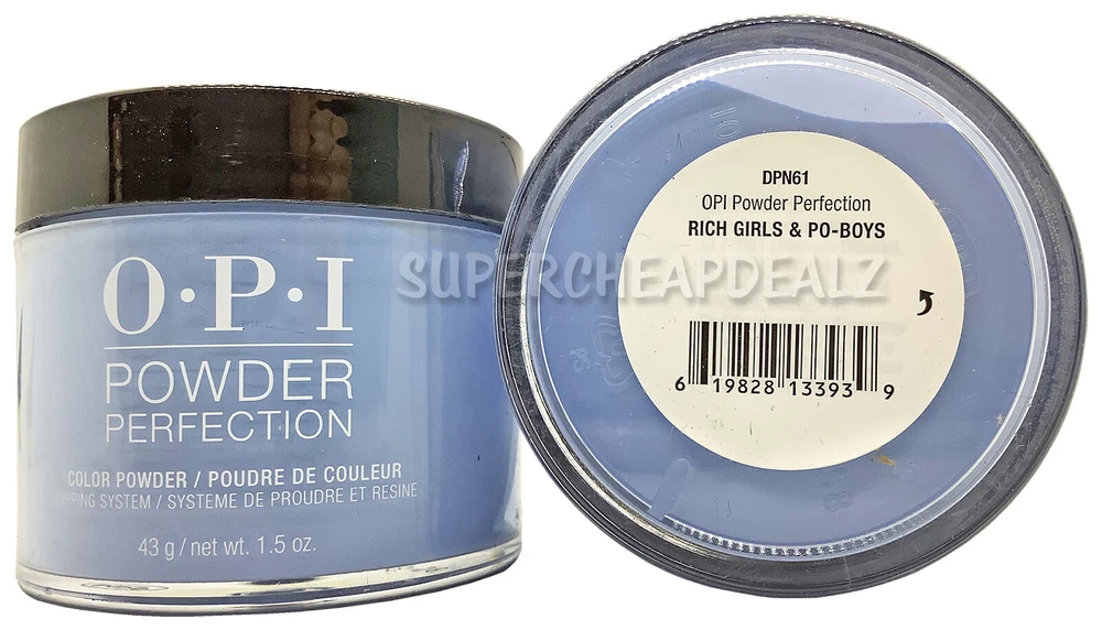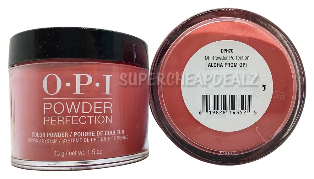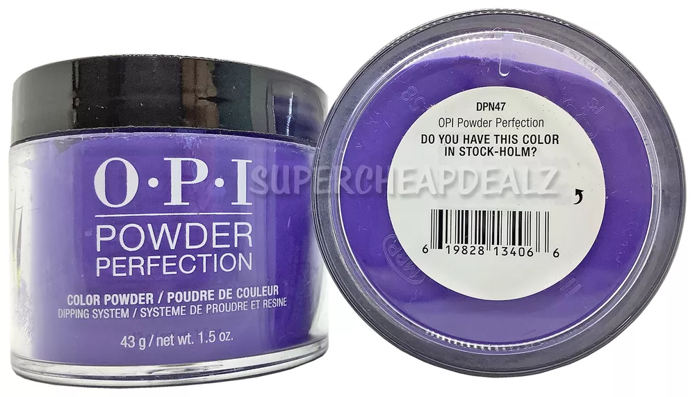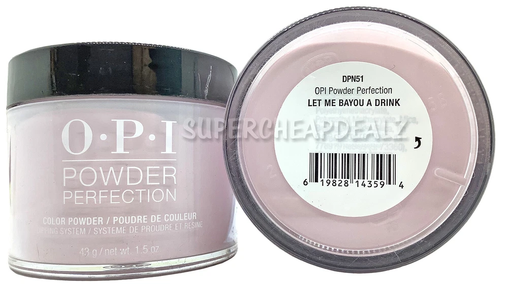 OPI Powder Perfection - CHOOSE Dip Powder | Base | Activate | Top Visit our eBay store for more great deals! Item Details OPI Power Perfection Dip Powder | Base | Activator | Top 100% Authentic. Brand New. Dip Powders DO NOT come with the liquids. Please purchase accordingly Choose option from drop down menu. Each sold separately. Dip Powder - 43 g / 1.5 oz Base Coat - 15 ml / 0.5 oz Activator - 15 ml / 0.5 oz Top Coat - 15 ml / 0.5 oz Click here for the OPI Acrylic Polish Organizer Rack Click here for the OPI Dual Cure LED Nail Lamp OPI Nail Dip Powder Dip into durability with dipping powers designed to give you confidence. Get beautiful and strong nails that hold up to your lifestyle. *Infomation provided by OPI Disclaimer Actual colors may vary. This is due to the fact that every computer monitor has a different capability to display colors and that everyone sees these colors differently. We try to edit our photos to show the samples as life-like as possible, but please understand the actual color may vary slightly from your monitor. We cannot guarantee that the color you see accurately portrays the true color of the product. Disclaimer: Handle and store product with care per manufacturer instructions. Use at your own risk. Seek professional attention if needed. SuperCheapDealz, Inc . is not responsible or liable for any type of improper usage or negligence of this product, which may cause damage or harm. Use this product for its intended use only. SuperCheapDealz, Inc. is not responsible for changes of manufacturing components, specifications or color which may differ from literature, websites or other promotional items. Image may vary from different types of screens. Shipping will comply with regulations and shipped ORM-D . Dip Powder: Ingredients - polyethyl methacrylate, polymethyl methacrylate, benzoyl peroxide, silica. may contain: aluminum hydroxide, barium sulfate, bis propane, calcium aluminum borosilicate, red 6, red 7, violet 2, iron oxides, red 30, red 27, barium sulfate, ultra marines, yellow 5, bismuth oxychloride, maganese violet, ferric ferrocyanide, blue 1, red 33, mica, tin oxide. Liquid: Ingredients - Ethyl Acetate, Methyl Propyl Ketone, MIBK, Dimethyltolylamine Terms of Sale Payment: We accept Paypal, Visa, Mastercard, Discover & American Express Returns: W e stand behind every product we sell with a 100% product guarantee. Please contact us if you are not satisfied with your purchase within 30 days from the delivered date. R eturned item must be in original condition, including the box, stickers/labels, packaging, and all accessories. Restocking fee of 20-50% will be applied if these conditions are not met. A ny return without our authorization will not be accepted. A ll return packages should be accompanied by a tracking or delivery confirmation number back to our warehouse. Shipping Information We offer FREE SHIPPING on all orders in the 48 contiguous United States! Shipping to Alaska or Hawaii will require additional charges. We ship all orders the same day or next business day. Once an order is shipped, you will be emailed a tracking number. Please make sure you enter the correct shipping address. We will not make any changes to the shipping address once you place an order .