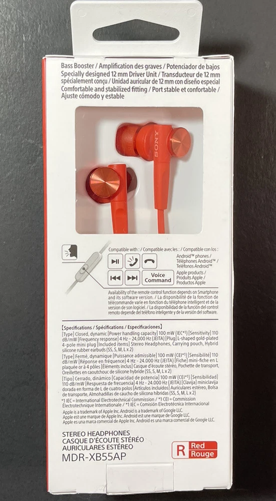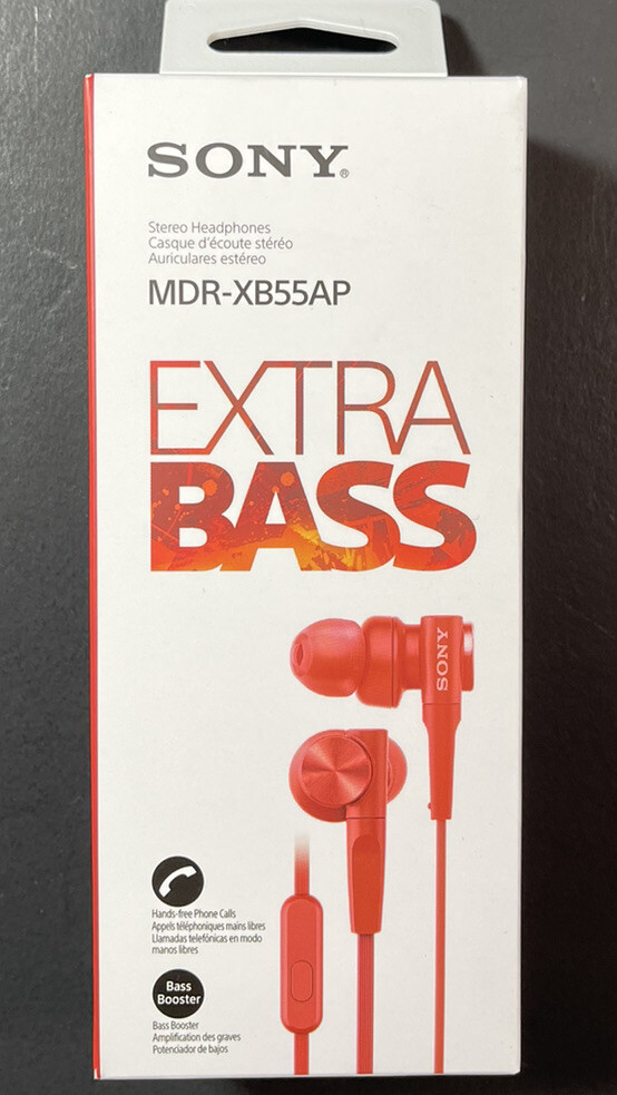 Official Sony Extra Bass Stereo Earphone MDR-XB55AP [ RED ] NEW