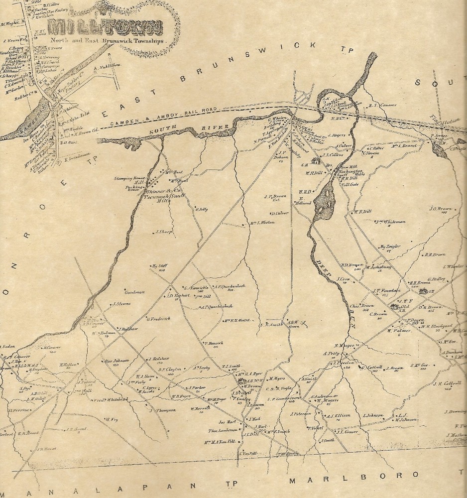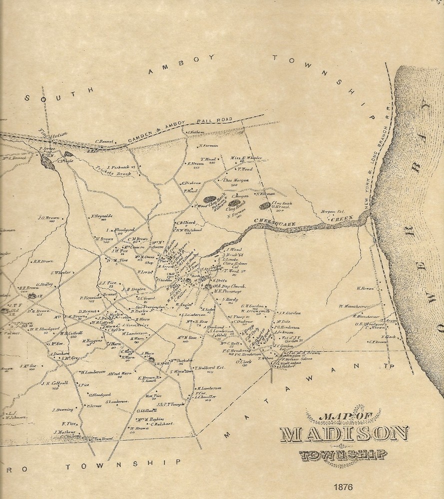 This is a 2 map set which shows where many of the homeowners resided in the Township of Madison (now called Old Bridge), Middlesex County, New Jersey in 1876. These fine maps were recently reproduced on fine natural color parchment. They're 11"x 17" and suitable to fit a standard size frame or can be matted to fit a larger museum quality mat. Contained on the maps are finely detailed locations of the homeowners of Old Bridge. The pictures provided show only portions of the actual maps. Please contact me with any questions! The first map shows the entire Township of Old Bridge and also contains a small inset map of Mill Town. Some of the towns, villages or other areas which are shown are Runyon, Parlin, Cheesequake State Park, Madison Park, Cliffwood, Sayreville, Browntown and Moerle Corner. Due to the large area covered on this map, some of the names are quite small. Please check out the pictures provided for better detail. The second map shows the center of Old Bridge and also contains inset maps of South Amboy and Dayton. Truly a great matching set. It's hard to make out the specifics from my poor pictures however it's clearly detailed on the actual maps! Some of the surnames which are printed are Palmer, Higgins, Cottrell, Zeigler, Whiteman, Brown, Reynolds, Dayton, Gordon, Henderson, Briggs and so many more that it's impossible to list! Please note that much of the very densely populated areas don't show surnames however the homesteads and estates are shown. Also indicated on the maps are town and or county boundaries, schools, named streets, railroads and rivers/streams. Please check out the pictures provided for better detail. This set would indeed make quite a conversation piece as well as an excellent gift for that person who has everything! What a great genealogical treasure to be able to locate the homes of one or more of your ancestors! Multiple purchases can be combined for one shipping charge! Please check out my other listings for many other fine old town maps! BUYERS SPECIAL-------BUY ANY 3 LISTINGS OR MORE AND RECEIVE FREE SHIPPING!