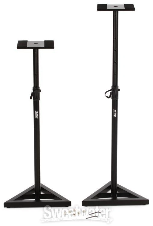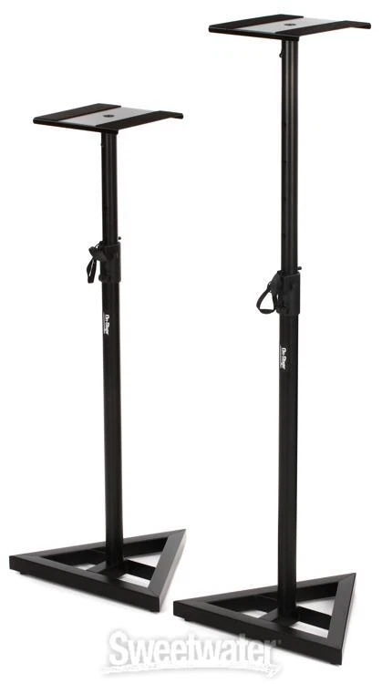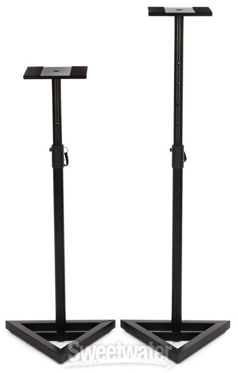 The On-Stage Stands SMS6000-P is a pair of monitor stands that are designed especially for your home, project, or recording studio - in fact, they're perfect anywhere you need to place nearfield monitors but have tight space requirements. The SMS6000-P monitor stand pair features stable, triangular metal bases with adjustable leveling spikes and four locking adjustment positions from 36" to 54" high. What's more, the SMS6000-P has sturdy metal shelves with soft, rubberized, vibration-reducing pads. If you're in the market for monitor stands, check out the On-Stage Stands SMS6000-P. Quality Gear from On-Stage Stands The SMS6000-P monitor stands are another great product from On-Stage Stands, which provides high-quality equipment solutions for recording, touring, and performing musicians all over the world. Whether you need to outfit your studio with various kinds of microphone stands - from booms to desktop to round base - or you need to set up all your Sweetwater is an Authorized On-Stage Dealer Genuine New Item Sweetwater's 2-year warranty On-Stage SMS6000-P Studio Monitor Stands Adjustable Studio Monitor Stands (pair) The On-Stage Stands SMS6000-P is a pair of monitor stands that are designed especially for your home, project, or recording studio - in fact, they're perfect anywhere you need to place nearfield monitors but have tight space requirements. The SMS6000-P monitor stand pair features stable, triangular metal bases with adjustable leveling spikes and four locking adjustment positions from 36" to 54" high. What's more, the SMS6000-P has sturdy metal shelves with soft, rubberized, vibration-reducing pads. If you're in the market for monitor stands, check out the On-Stage Stands SMS6000-P. Quality Gear from On-Stage Stands The SMS6000-P monitor stands are another great product from On-Stage Stands, which provides high-quality equipment solutions for recording, touring, and performing musicians all over the world. Whether you need to outfit your studio with various kinds of microphone stands - from booms to desktop to round base - or you need to set up all your keyboards, guitars, studio monitors, and more, On-Stage Stands has a diverse selection of durable stands to meet your needs. PA stands, rack stands, amp stands, music stands, and even stand cases are just a few of their additional offerings. For all your music equipment stand accessory needs, look to On-Stage Stands. On-Stage Stands SMS6000-P Monitor Stand (pair) Features at a Glance: Attractive design with steel, arc-welded construction 90 lbs weight capacity Triangular metal base with adjustable leveling spikes Large, sturdy metal platform with soft, rubberized padding reduces vibration Platform size 9-1/2" square Five locking height adjustment positions: 36", 40", 44" and 48", with maximum height of 54" The On-Stage Stands SMS6000-P: a compact, economical monitor stand solution! Specification Detail Floor/Desktop Floor Height 36.5"-54" Top Plate Depth 9.5" Top Plate Width 9.5" Base Width 18" Material Steel Load Capacity 90 lbs. Weight 24 lbs. each RETURN INFORMATION We want you to be completely happy with your purchase from Sweetwater. If you are not satisfied with your product, you may return it for a refund of the purchase price within 30 days. If your purchase was eligible for Free Shipping, the shipping cost will be deducted from your credit or refund. Returns must be in the complete and original packaging with all accessories and complete documentation (Owner's Manual, warranty card, quick start guides, etc.), show no signs of wear or use, and include a Return Authorization number or be subject to a restocking fee.