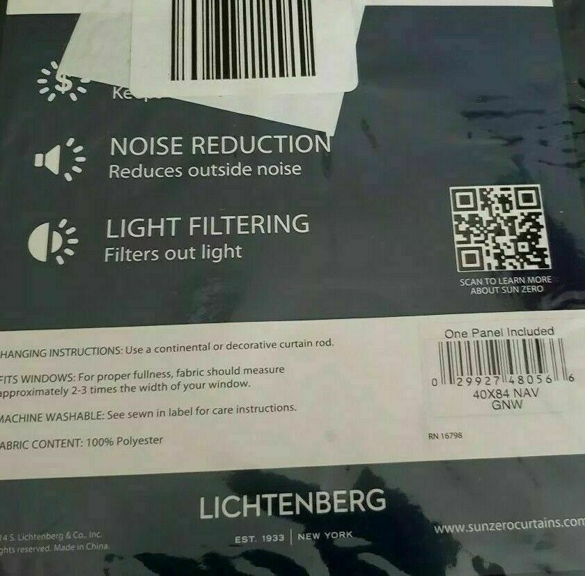 ONE - Sun Zero Evan Brand Curtain Panel Grommet-Top Curtain Window Panel 40" x 84" Hanging instructions: Use a continental or decorative curtain rod. Fits windows: For proper fullness, fabric should measure approximately 2 to 3 times the width of your window. Machine washable 100% Polyester Dark Blue Energy Saving - Keeps out heat & cold NOISE Reduction - Reduces outside noise Light Filtering- filters out light BRAND NEW CONDITION ~~~~~~~~~~~~~~~~~~~~~~~~~~~~~~ ~~~~~~~~~~~~~~~~~~ ******* ATTENTION ******* ~~~~~~~~~~~~~~~~~~~~~~~~~~~~~~ ~~~~~~~~~~~~~~~~~~ We offer only closeouts, overstocks, discontinued, factory-seconds and shelf-pulled merchandise at great prices. Boxes may be scratched, torn, crushed, missing or otherwise blemished. Items are new but some items may be shelf-pulled and may have smudging or other types of use. Some items may be part of earlier releases and could have minor defects. Packaging and pigmentation may vary slightly from the newer versions as well. The photo-flash of displayed images may also change actual color of item. Disclaimer : While we work to ensure that product information is correct, on occasion manufacturers may alter their ingredient lists. Actual product packaging and materials may contain more and/or different information than that shown on our eBay page. We recommend that you do not solely rely on the information presented and that you always read labels, warnings, and directions before using or consuming a product. For additional information about a product, please contact the manufacturer. Content on this site is for reference purposes only and is not intended to substitute for advice given by a physician, pharmacist, or other licensed health-care professional We will never ship you a defective item, so you can be sure of the quality of your purchase. Please be familiar with the product you are looking at. Contact us prior to purchasing, and after your purchase, with questions or concerns, as customer service is our top priority . PLEASE, contact us through the eBay messaging system to allow us faster and more efficient responses. If an item is returned...buyer must pay return shipping - refer to return policy. Returns accepted if returned within 14 days ...in original packaging...unused/undamaged condition. NOTE: we charge a 10% re-stocking fee on all returned items. Items are sold AS IS. We do combine shipping and do ship internationally. Free shipping IS NOT OFFERE D to international buyers , so please select the correct shipping option if ordering from overseas. Please check with your country's customs regulations to determine if you will have a duty or tariff due on the product purch