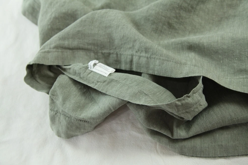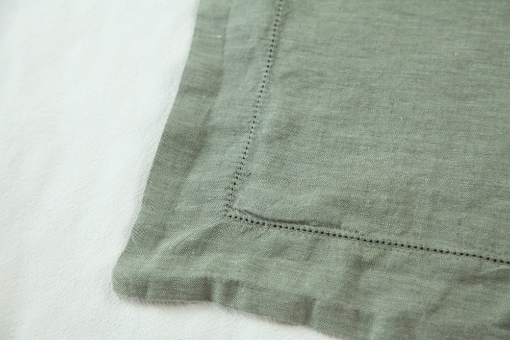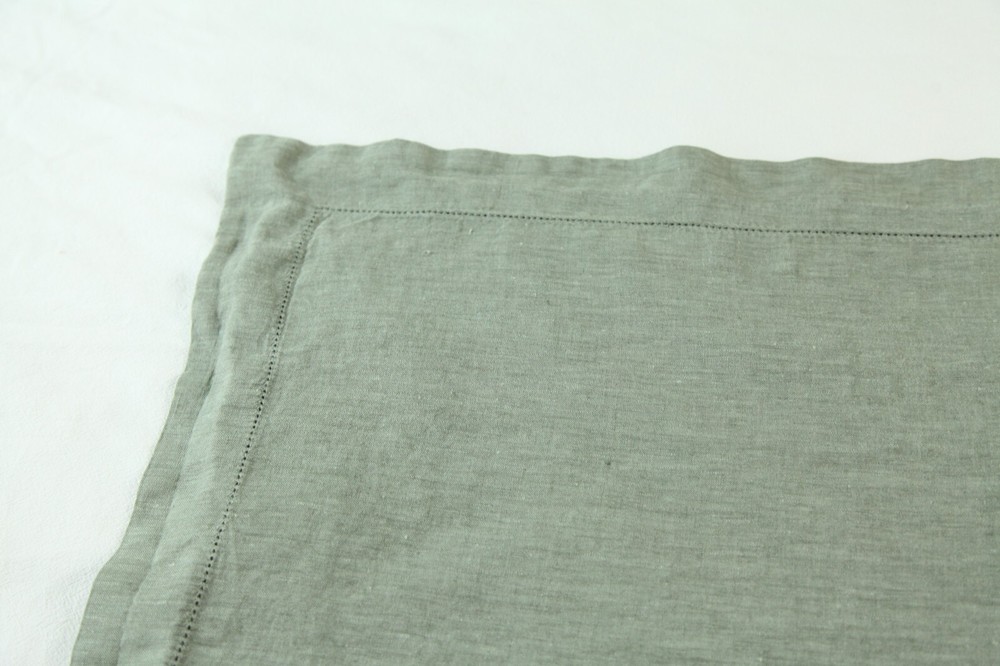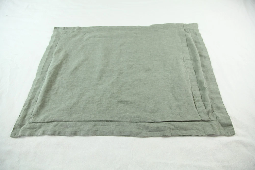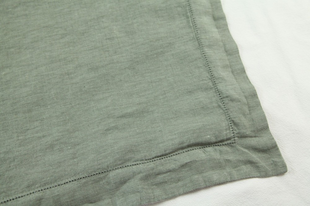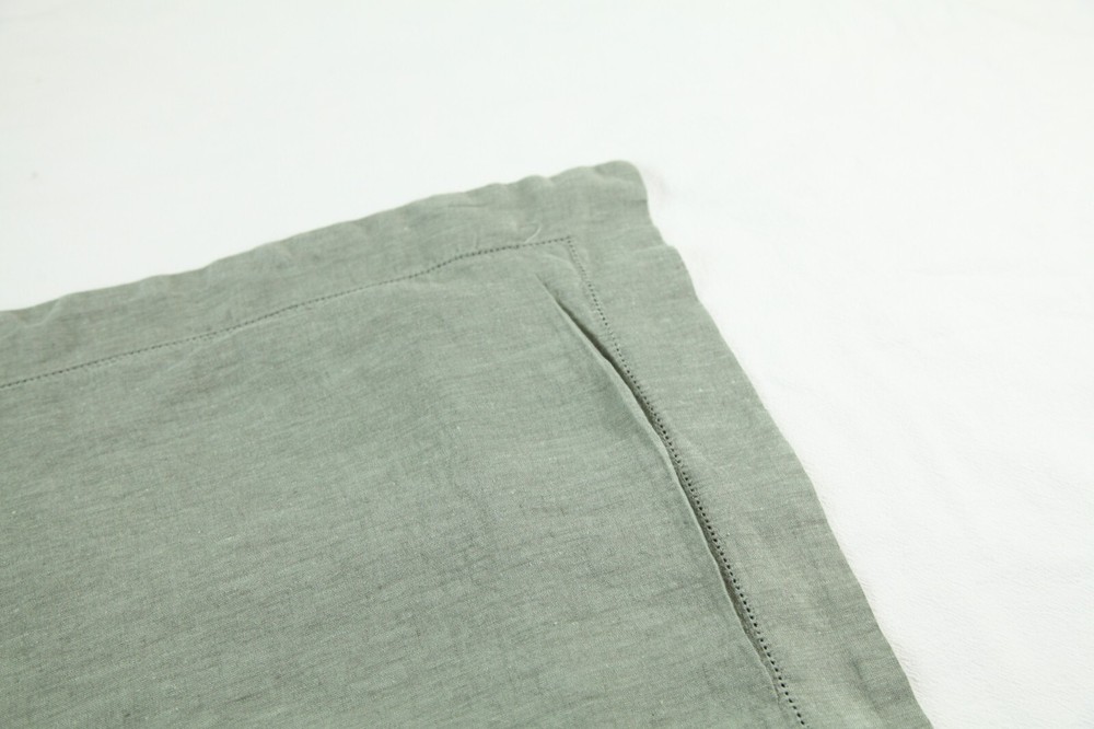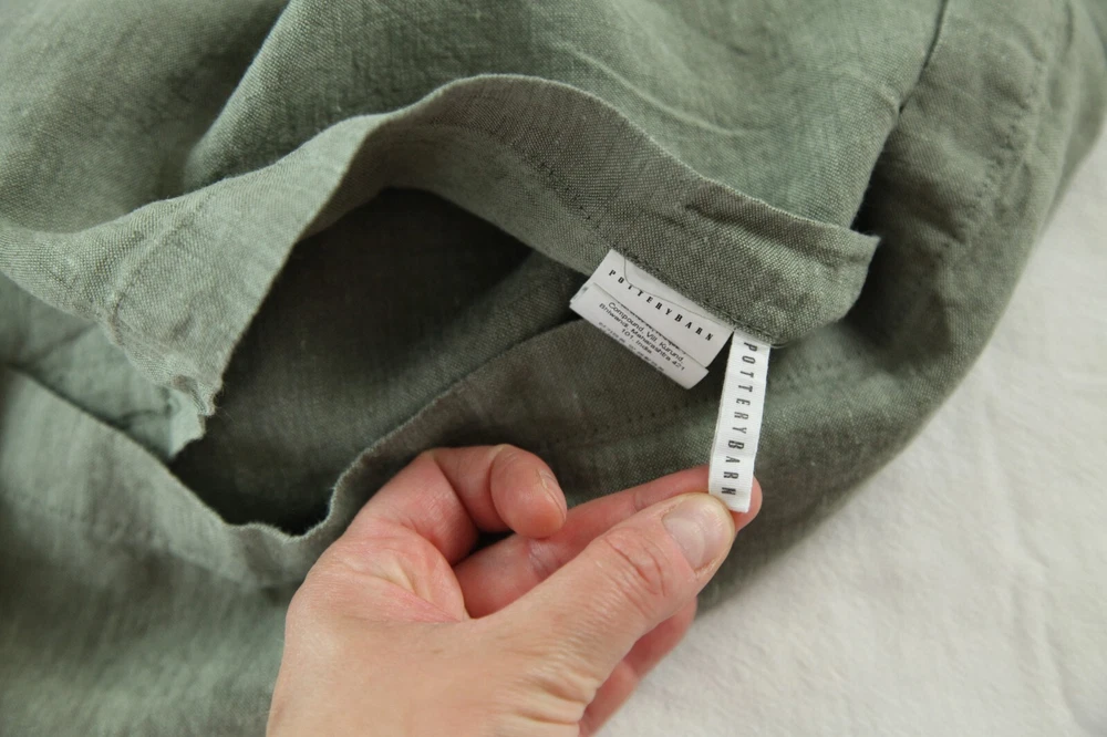 One Pottery Barn 100% linen standard pillowcase. It is a slate grey/greenish color. To me it looks similar to the Loden color that is available on their website but I can't say for certain. It is gently used with no holes/stains or tears. The pocket for the pillow is 27" x 20" and there is a 2" border around the perimeter. Please see all photos for condition. 51F
