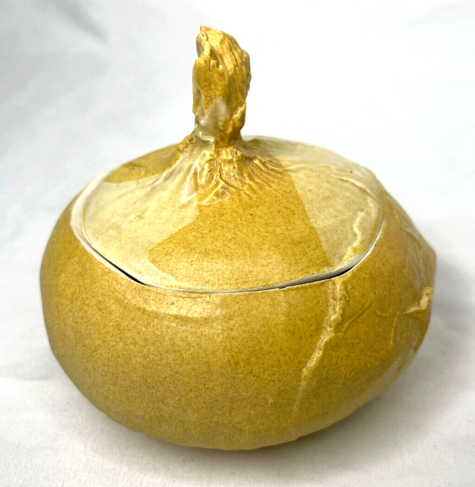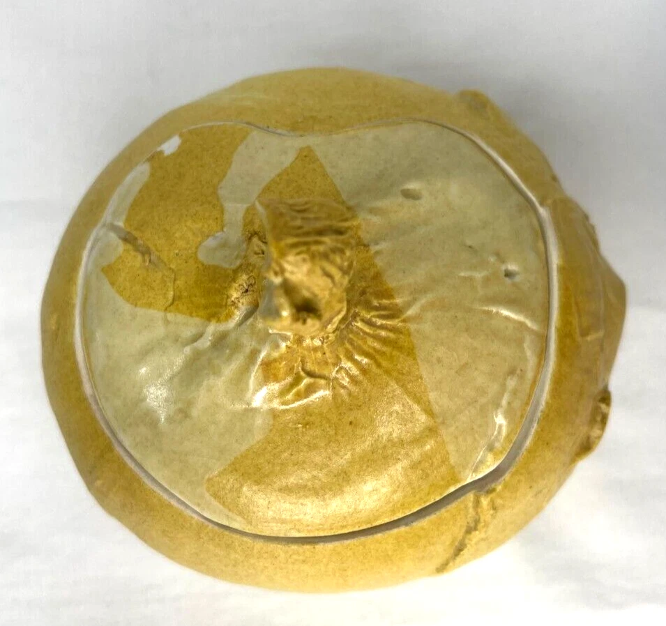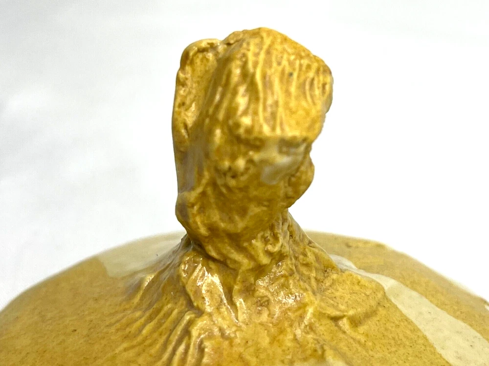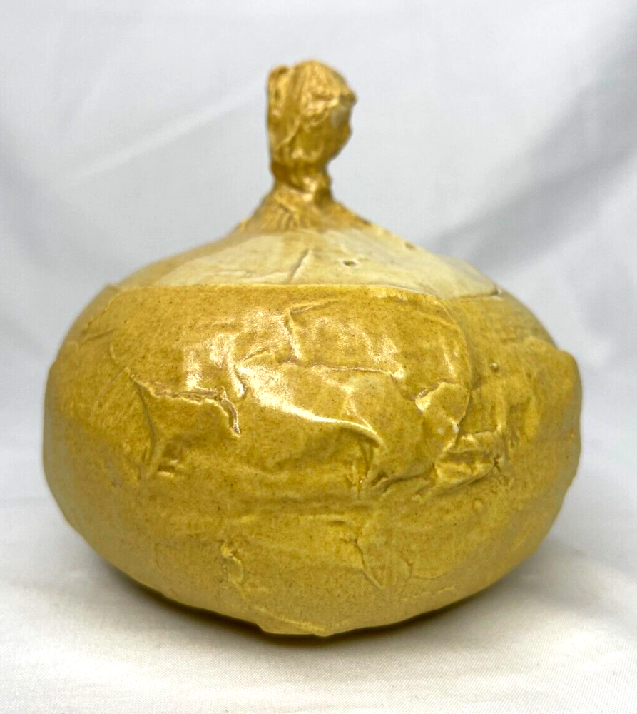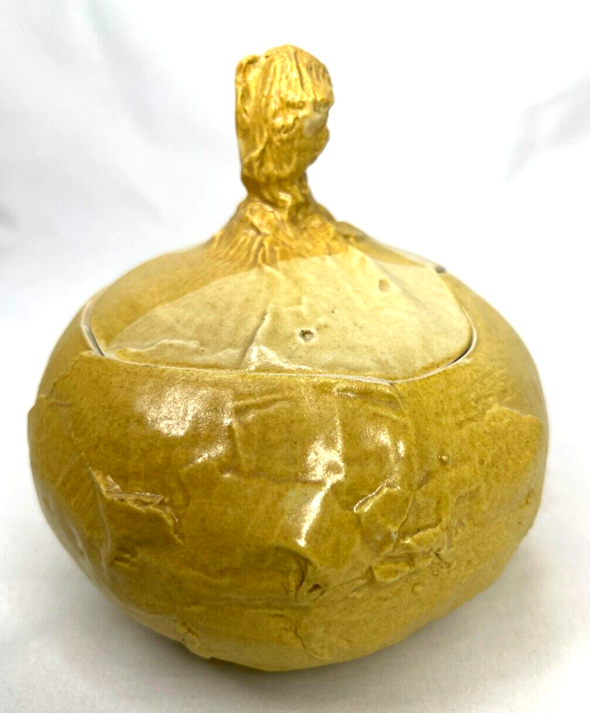 See last photo for chip on lid. An early original piece of studio pottery. Hand thrown & glazed Natural imperfections from hand made piece Not from a department store...