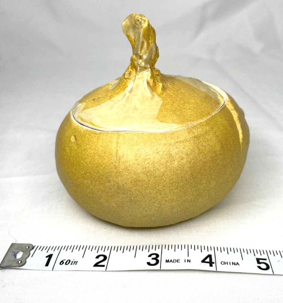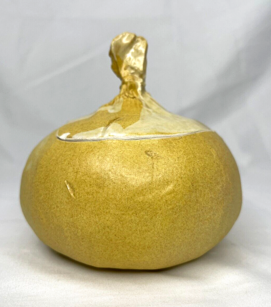 See last photo for chip on lid. An early original piece of studio pottery. Hand thrown & glazed Natural imperfections from hand made piece Not from a department store