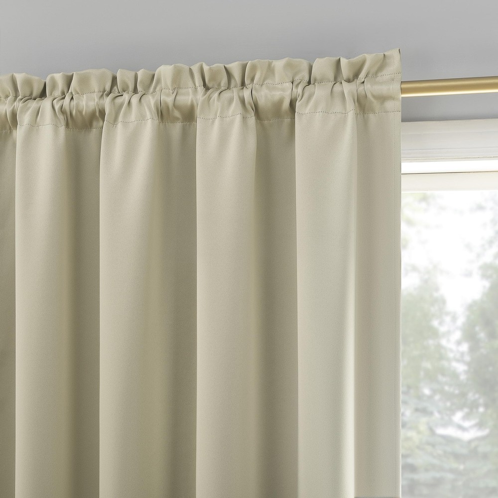 Oslo Theater Extreme 100% Blackout Rod Pocket Curtain Panels provide the ultimate in light blocking technology to keep out even the harshest of light while bringing an elegant urban sophistication to any room of your home. Extreme Blackout technology is laboratory tested to block out 100% of light, reduce outside noise by up to 45%, and decrease energy lost through your windows by up to 50%. Comfort is optimized with thermal properties that help keep summer heat and winter chill out of your home. Built-in rod pocket design allows for easy slide-through installation on curtain rods up to 1.5" in diameter. Hang in your entertainment room to eliminate screen glare and reduce distracting outside noise, or in your bedroom for enhanced privacy and a sounder, more uninterrupted sleep. Sold as individual panels measuring 52" width by 84" length in color cream. Measure carefully before selecting your desired size and quantity. Rod not included. Machine wash cold on gentle cycle. Use non-chlorine bleach when needed. Tumble dry on low heat, using a cool iron as needed. Extreme Blackout technology blocks out 100% of outside light Energy Efficient design reduces energy lost through your windows by up to 50% Thermal properties help keep summer heat and winter chill out of your home Noise reduction by up to 45% helps you get a sounder, more uninterrupted sleep Built-in rod pocket fits curtain rods up to 1.5" in diameter Includes 1 curtain panel