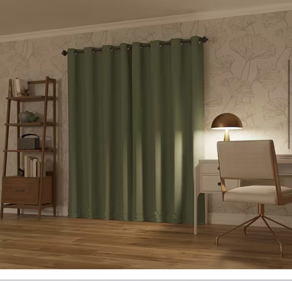 Extreme Blackout technology blocks out 100% of outside light Energy Efficient design reduces energy lost through your windows by up to 50% Thermal properties help keep summer heat and winter chill out of your home Noise reduction by up to 45% helps you get a sounder, more uninterrupted sleep Grommet top design allows for easy slide-through installation on curtain rods up to 1.5" in diameter Each panel sold separately. (Image features 2 panels Model # 61137 Store SKU # 1009151459 LOT# 003