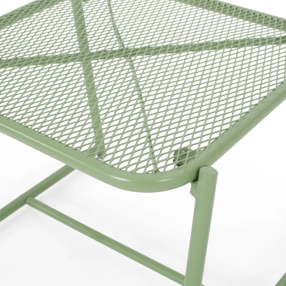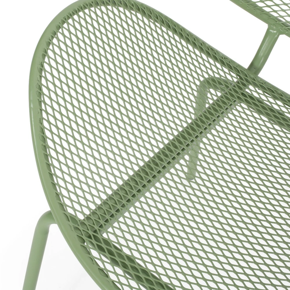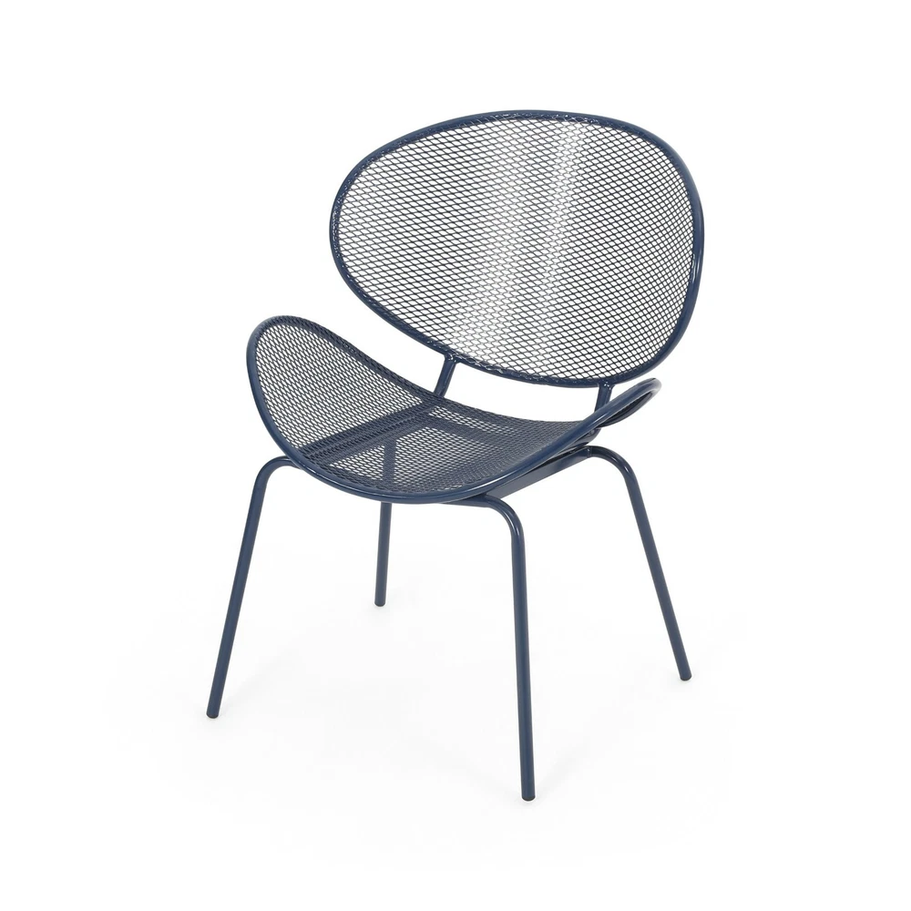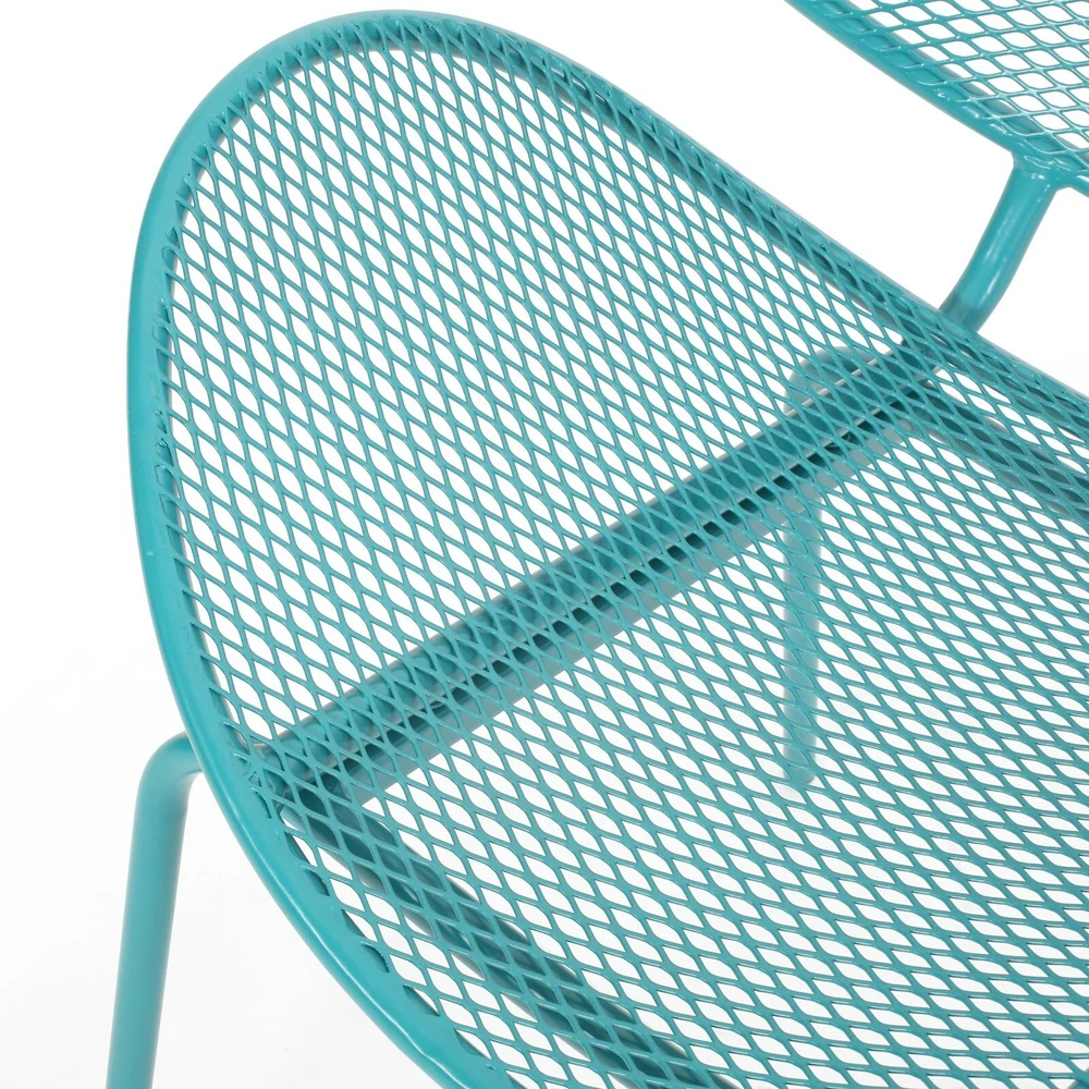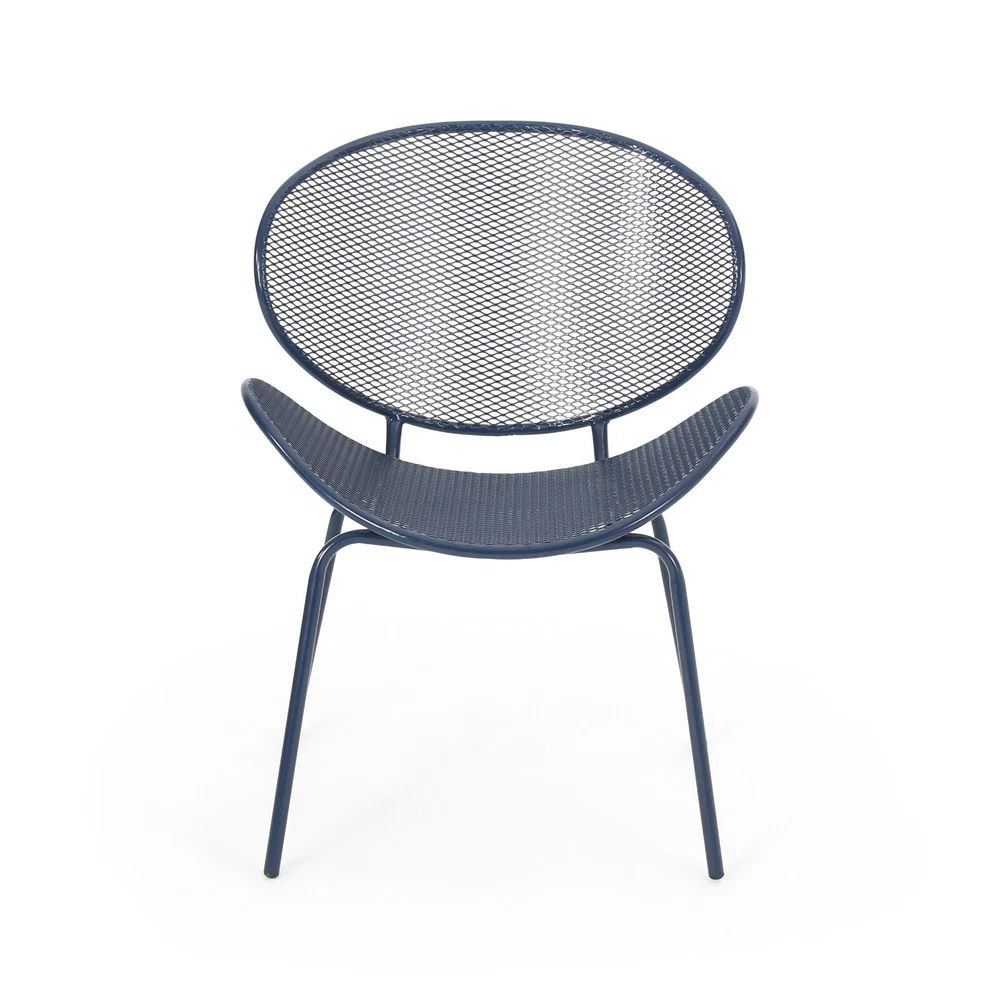 Outdoor lounging has never been easier with our delightful two-seater chat set. Featuring breathable mesh seating and groovy shell shape frame, our chat set offers a timeless yet modern style for your backyard while providing ultimate comfort. These chairs hug you in all the right places with its swooping curves and smooth, rounded frames. Complemented by a smooth matte finish, this lovely set not only brings your patio an upgraded look but is also made to last with its durable structure. MODERN: With a delightful mesh motif contrasted perfectly by its rounded edges, our chat set is the ideal modern accessory for your outdoor space. Finished with shell frames, this set not only has a sleek, minimalistic look but also provides a stable structure. METAL FRAME: Constructed of powder-coated iron, the frame of this chat set is made to be incredibly durable, ensuring that this piece will hold up under heavy use. Please note, this is only weather-resistant and it is suggested that this is covered or stored indoors when it rains. SHELL CHAIR: Featuring a playful retro look, the chairs of this set offer a unique shell design that emphasizes beauty from all angles. With tapered legs and wing-like silhouette, this chair offers incredible stability with its three-legged structure while offering a light and airy atmosphere to your living room. DIMENSIONS: Choose an accessory that is the perfect size for you and your furniture. Each chair is 24.80" W x 25.50" D x 34.00" H and the table is 19.50" W x 18.00" D x 16.25" H. You will love how much your space can transform with the simple addition of this charming set. ASSEMBLY REQUIRED: Some assembly is required for this chat set. All of the instructions and tools needed for assembly are included. Includes: Two (2) Chairs and One (1) Table Material: Iron Finish: Matte Green / Matte Navy Blue / Matte Orange / Matte Teal Hand-Crafted Details Assembly Required Dimensions: 24.80 inches deep x 25.50 inches wide x 34.00 inches high Seat Dimensions: 16.50 inches deep x 18.00 inches wide x 16.50 inches high Table Dimensions: 18.00 inches deep x 19.50 inches wide x 16.25 inches high