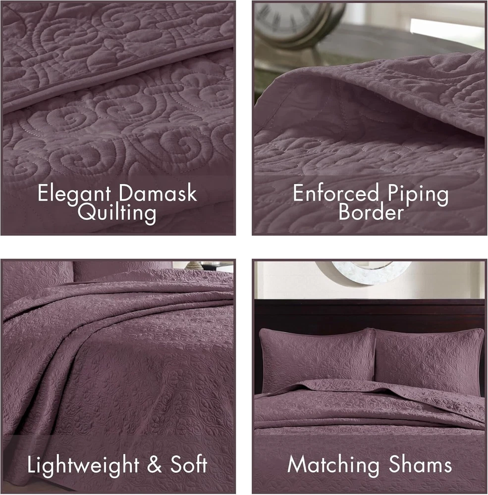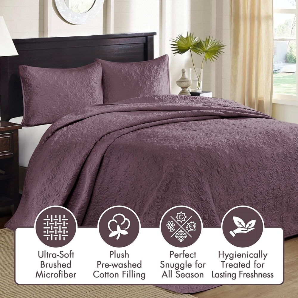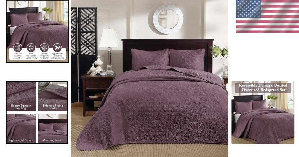 Oversized Reversible Coverlet Set with Classic Damask - Purple Queen Bedspread ‹ › ‹ › ‹ › ‹ › ‹ › ‹ › ‹ › ‹ › ‹ › Oversized Reversible Coverlet Set with Classic Damask Color: Purple Size: Queen Features: 100% Microfiber Face & Reverse Filling: 90% Cotton, 10% Olefin Oversized dimensions: 102"W x 118"L for a perfect drape on high depth mattresses Classic stitch pattern that pairs effortlessly with existing décor Lightweight fabric ideal for summer use, perfect for layering during colder Includes: 1 Bedspread and 2 Standard Shams (20"W x 26"L each) Care instructions: machine washable for easy maintenance Benefits: Transform your bedroom into a sanctuary with a charming cottage-inspired design. Enjoy the comforting touch of prewashed cotton filling for added durability. The oversized dimensions ensure an elegant drape, enhancing the aesthetics of your space. Versatile and reversible, allowing for creative styling and décor customization. Embrace effortless elegance with minimal upkeep due to the machine-washable fabric. Why choose our Oversized Reversible Coverlet Set? The Quebec Reversible Bedspread Set is your gateway to a beautifully updated bedroom. With its sumptuous texture and luxurious purple hue, this set is designed to enhance your space while providing comfort and versatility. The classic damask pattern and oversized dimensions are not just a visual delight; they promise to drape elegantly over your high depth mattress. Experience the perfect blend of style and function, whether you’re enjoying the cool summer nights or layering for the colder season. Embrace comfort without sacrificing elegance—order your Oversized Reversible Coverlet Set today and redefine your bedroom experience! Shipping Free & Fast Shipping - We offer free shipping to most of the USA with a normal delivery time of 3-7 days. However, due to the current situation, additional delivery time (up to 3 weeks) may be required for some items. Alternative Carriers - We may use alternative carriers (e.g. USPS, FedEx, UPS, etc.) to ensure your package arrives safely and on time. Due to the use of multiple carriers, we are unable to provide a tracking number automatically. Handling Time - Orders are processed and shipped within 1-2 business days of receiving cleared payment. Shipping Restrictions - Shipping to Alaska, Hawaii, Puerto Rico, Guam, and other US territories may incur shipping charges or delivery restrictions. Please contact us before ordering, or your order can be refunded/cancelled. State Restrictions - There may be restrictions based on your state of purchase. For example, certain items may not be shipped to California due to state regulations. Contact for Tracking Updates - If you require tracking updates or have any concerns about the delivery of your order, please feel free to contact us, and we will be happy to assist you. Return 30-Day Hassle-Free Returns - We want you to be completely satisfied with your purchase. If you are not, you can return the item within 30 days of receiving it for a full refund or exchange. Easy Return Process - To start a return, simply contact us and we will provide you with a prepaid return shipping label and detailed instructions. Restocking Fee - There are no restocking fees for returns. However, the buyer is responsible for return shipping costs if the return is not due to a seller's error. Refund Processing Time - Refunds will be processed within 5 business days of receiving the returned item in its condition. Payment We accept all major credit cards, PayPal, and Apple Pay for your convenience. Your payment information is secure and encrypted to ensure a safe and seamless transaction. Please complete your payment within 3 days of purchase to avoid any delays in shipping. Feedback Your feedback is extremely important to us. We strive to provide the best products and customer service possible. If you are satisfied with your purchase, please take a moment to leave us a positive review. If you have any concerns or issues with your order, please contact us before leaving negative feedback. We are committed to resolving any problems and ensuring your satisfaction. Contact Us If you have any questions or concerns, please feel free to out to our customer support team. You can contact us through the eBay messaging system. We are available Monday to Friday, 9:00 am to 5:00 pm EST, and we will do our best to respond to your inquiry within 24 hours. Buy it now and enjoy a pleasant shopping experience! Model: Bedding Set Queen Set Includes: Coverlet,Pillow Sham Material: Cotton,Microfiber,Olefin Features: Lightweight,Reversible Theme: Bohemian,modern,damask Care Instructions: Machine Wash Department: Unisex Adult Room: Bedroom Size: Queen Type: Bedspread Color: Purple Fill Material: Cotton Blend Pattern: Damask Insulation: All Seasons Number of Items in Set: 3 Style: Bohemian Season: All Closure Type: No Closure Thread Count: 200 or Less GSM (Grams per Square Meter): Below 150