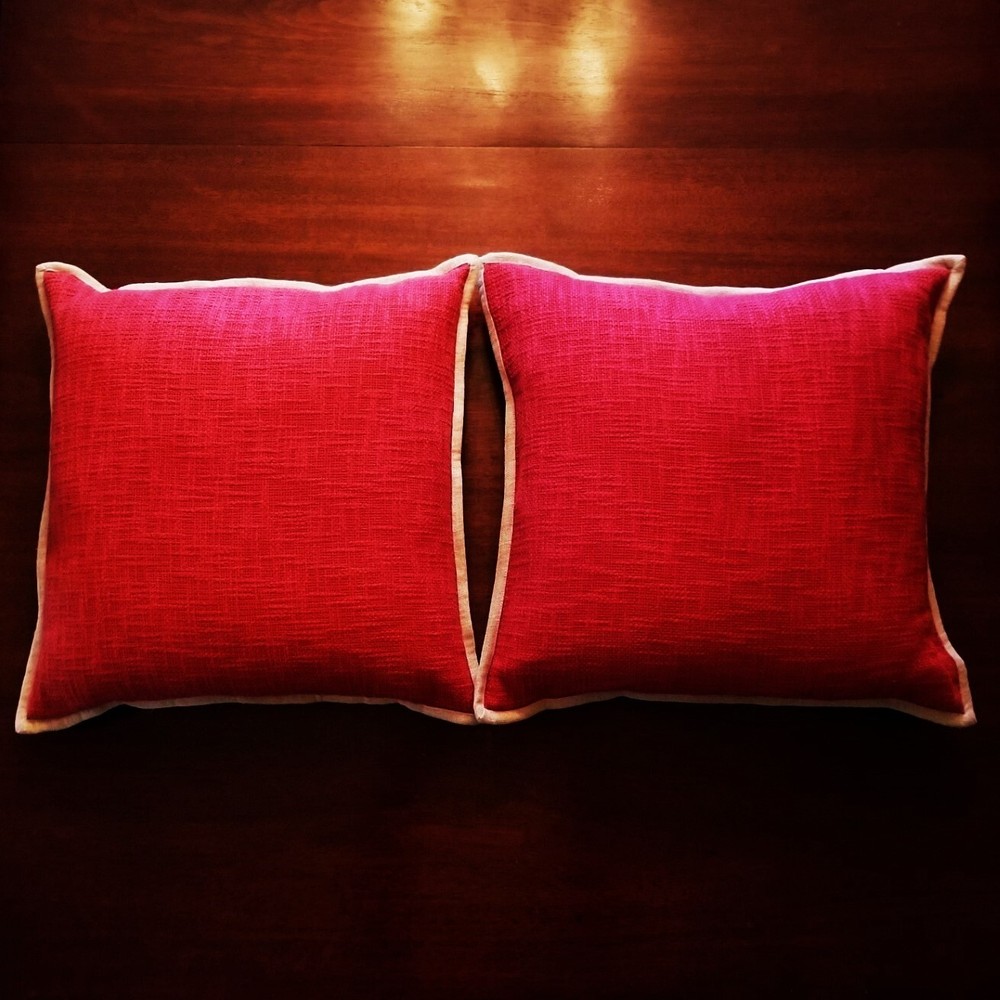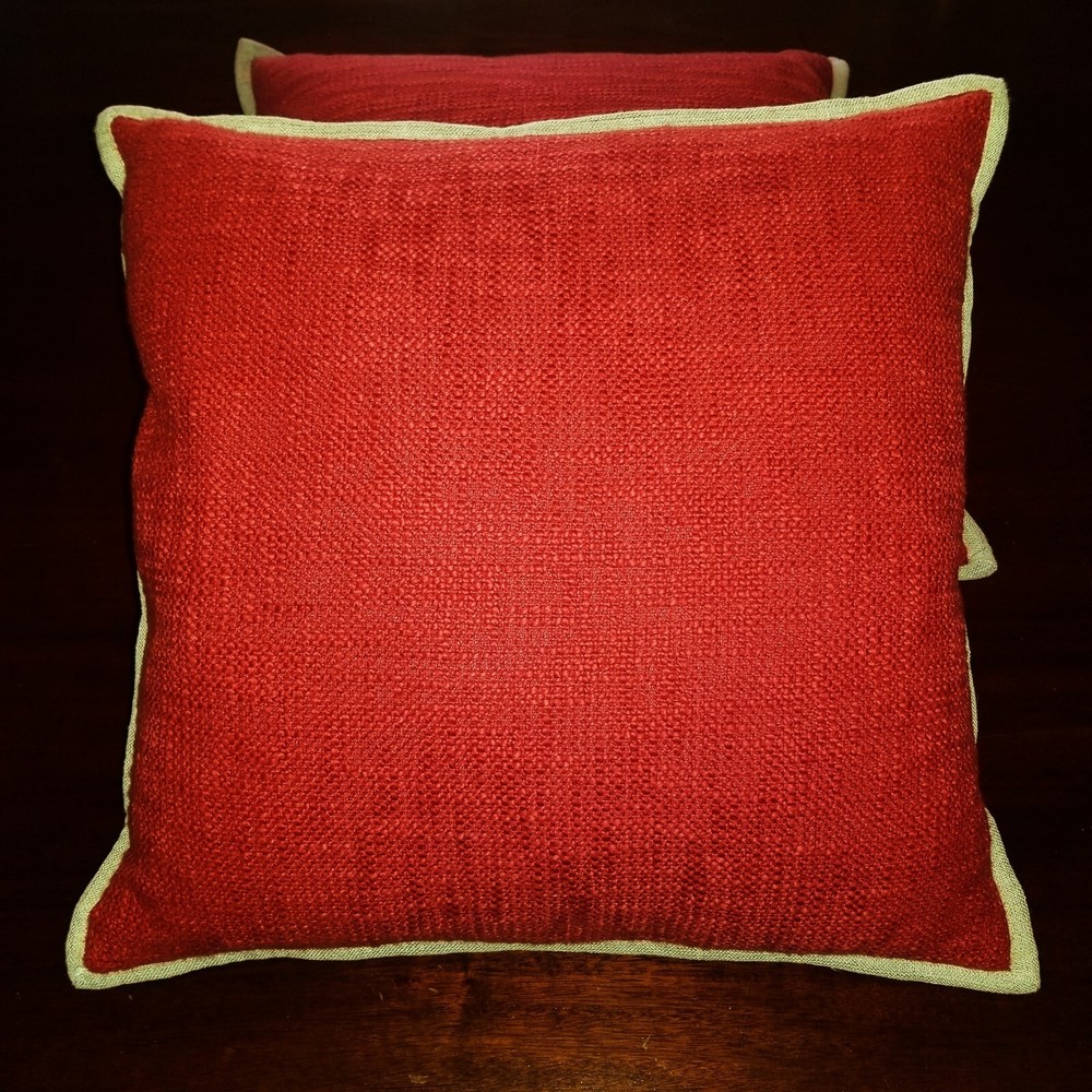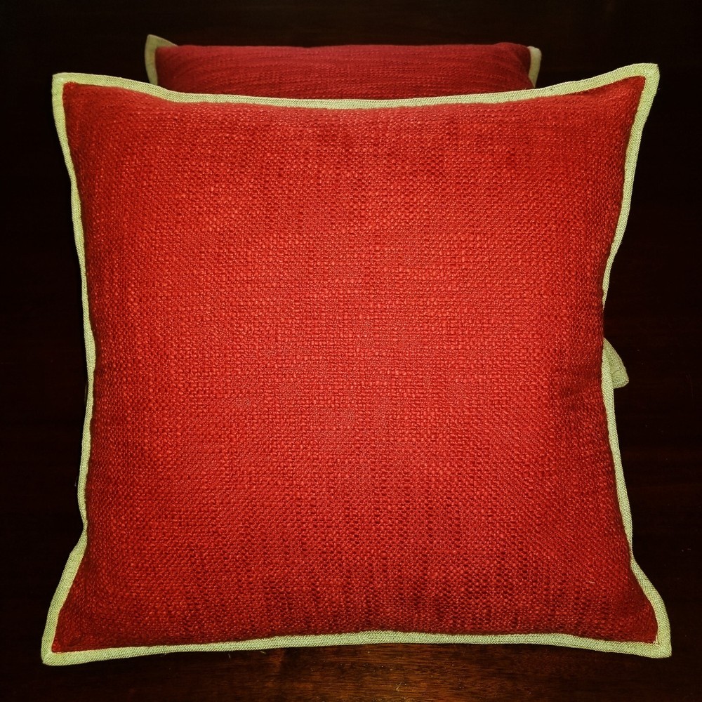 POTTERY BARN PAIR OF PERSIMMON PILLOWS Persimmon Weave Pillows with a Khaki contrasting Edge 20” square Hidden Zipper Made in India 100% Cotton Form is White Duck Feathers No rips, stains or holes Please read entire listing, examine all the pictures and please ask any questions that you may have All items are listed to the best of our ability; they are mainly in USED condition and sold AS-IS As prices vary greatly based on your location, I offer 3 shipping options so p lease select which way you prefer to have your item shipped UPS, FedEx or USPS Priority Mail. Also, item can be picked up in Richmond, VA 23226 to save on shipping cost