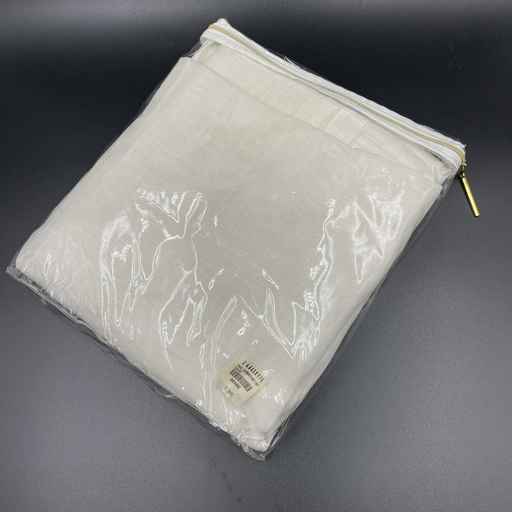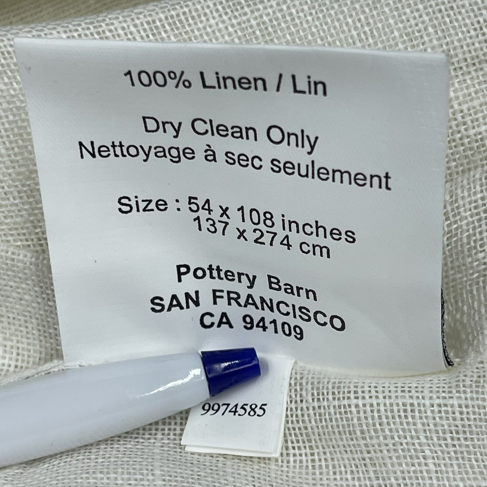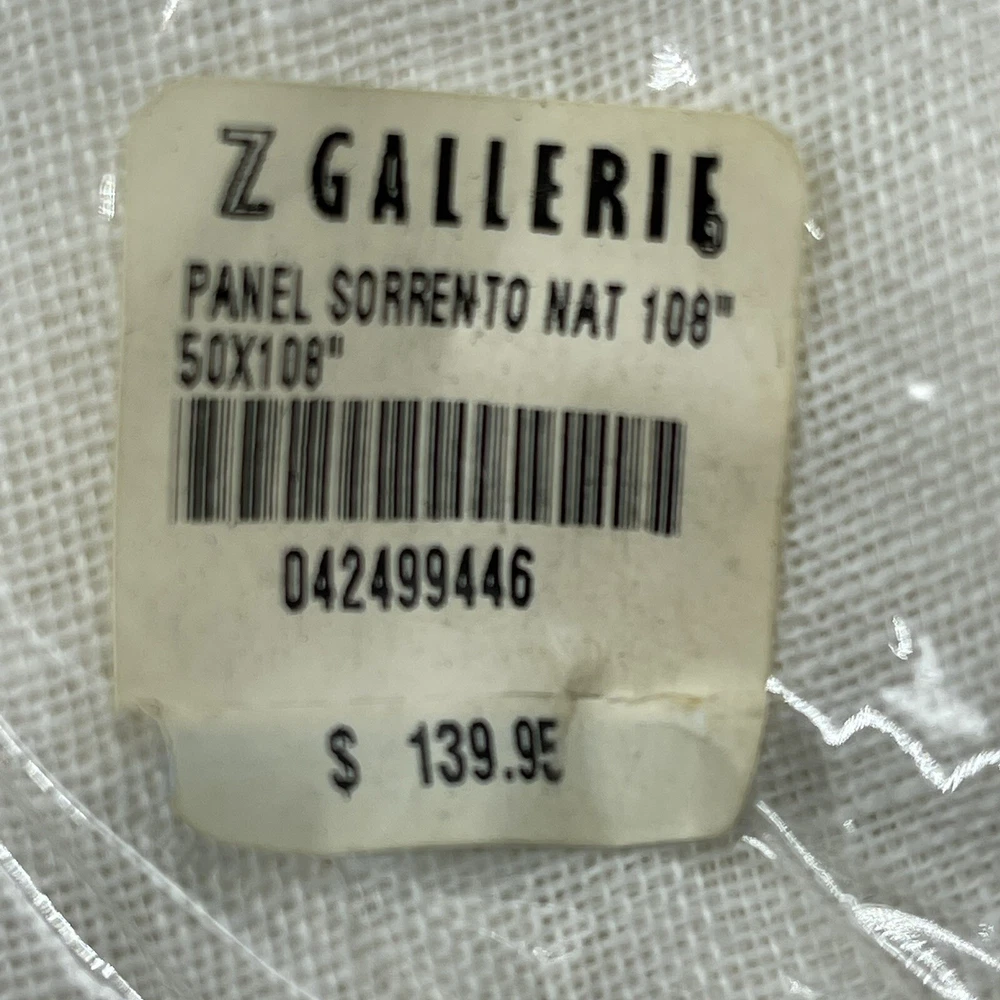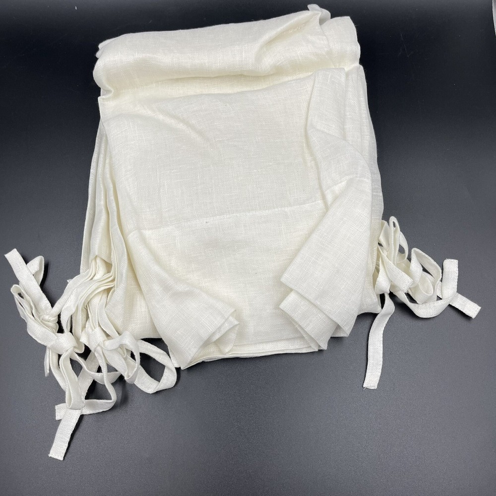 Selling 1 PAIR of panels. Multiple pairs are available Pottery Barn Silk SORRENTO tie top drapery panels by Z Gallerie Ivory (off white) Linen NOTE: the paper label says these are silk, but the tag on the drapes say LINEN. The drapery panel tag is correct. These are LINEN, not silk. Light filtering transparency adds privacy without compromising natural light shining through 54 W x 108 L inches Fabric has a built in valance at the top. Perfect addition to a sunroom or screened in porch where you want sunlight to filter through. Original retail price $279.90 for a pair BRAND NEW in original packaging.