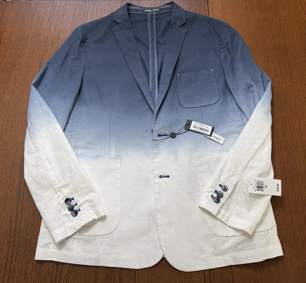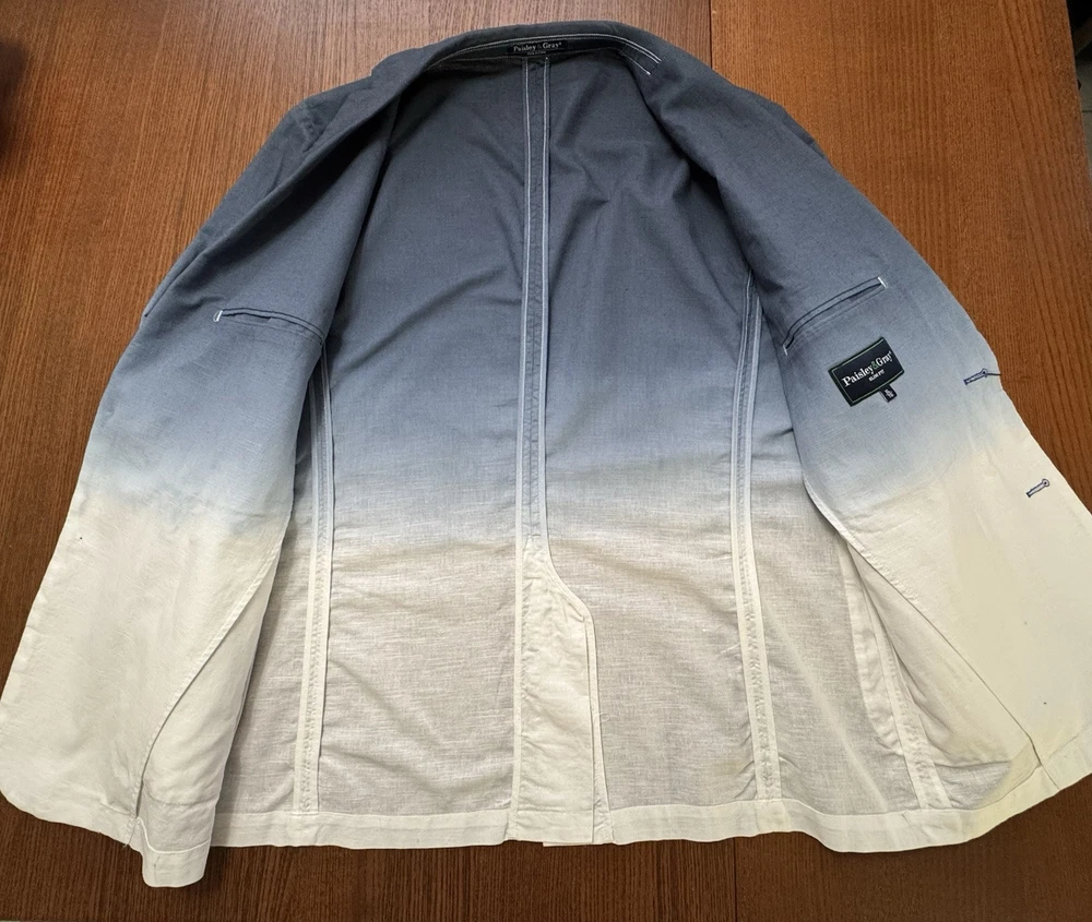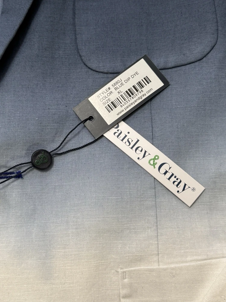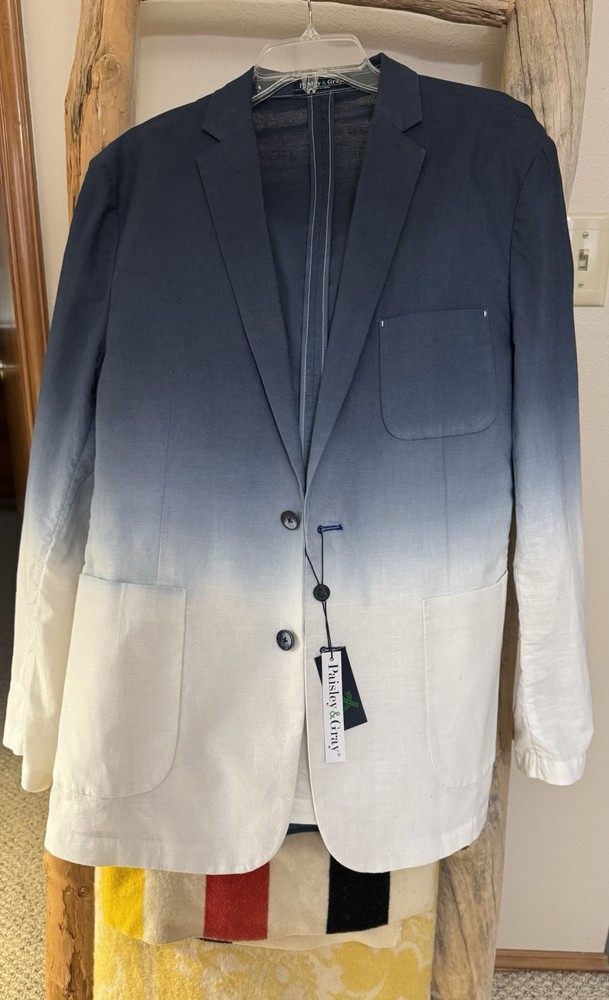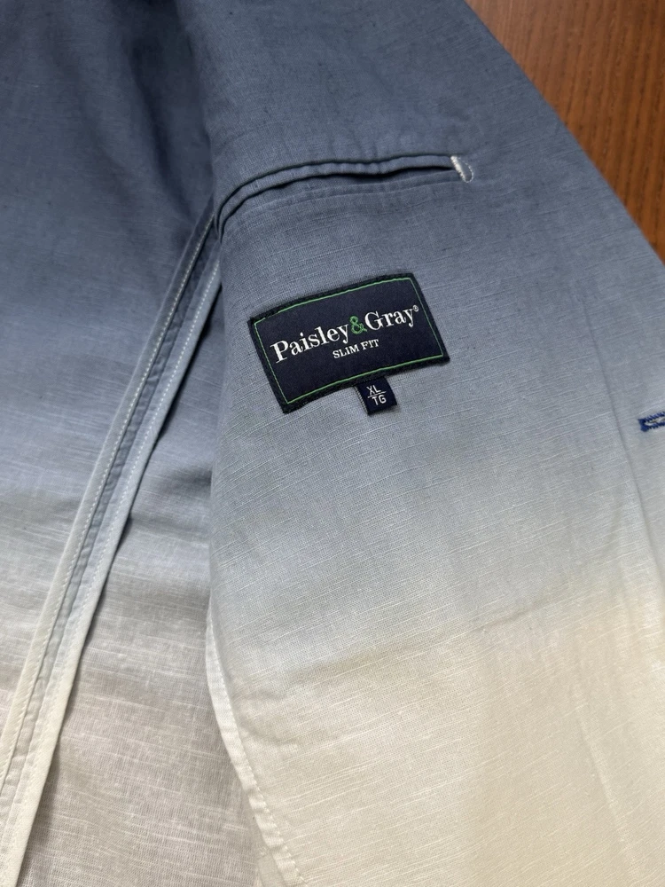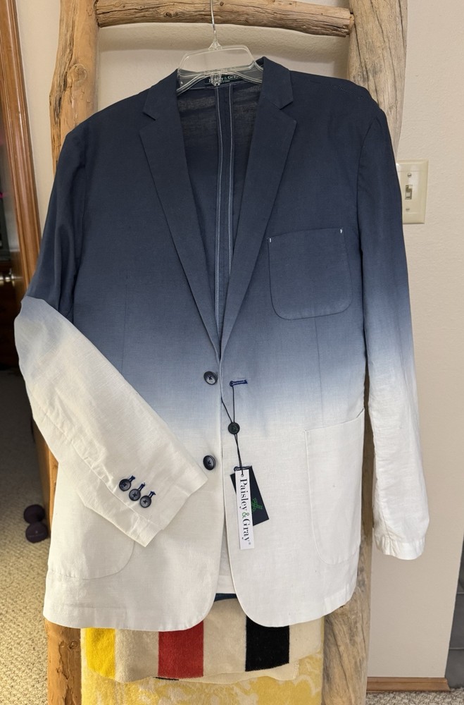 NWT! PAISLEY & GRAY Slim Fit Suit Separates Blue Dipped Dye Mens XL Linen Sport Jacket. Measurements in photos Runway style!...