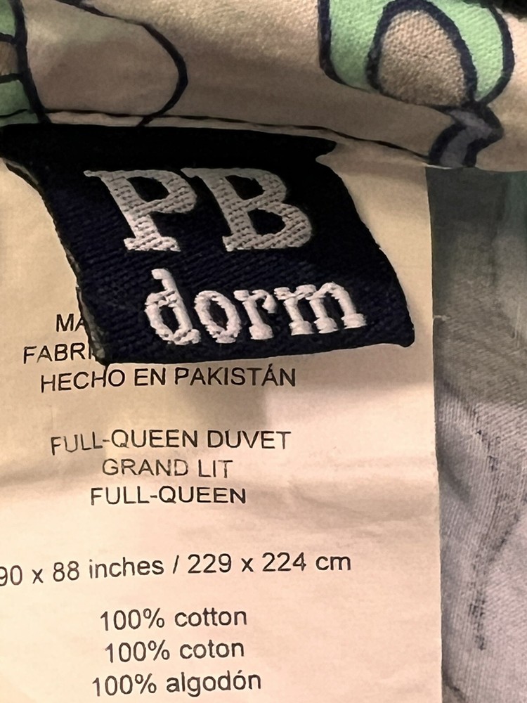 PB Pottery Barn Dorm Natalie Queen/Full Duvet Cover Bold Blue Paisley print No holes or stains Light wear and fade lines- not really easy to see in the overall pattern of the fabric...