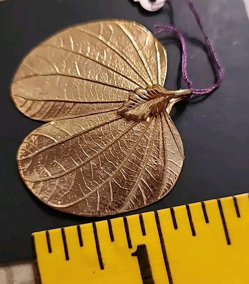 New old stock from closed jewelry store. BUTTERFLY GENUINE LEAF... Add a touch of vintage elegance to your jewelry collection with this stunning approximately 1.5 inch 24K yellow gold dipped plated pendant. The pendant features a genuine leaf design with intricate details that makes it unique and perfect for any occasion. The gold color is vibrant and eye-catching, while the charm style adds an extra touch of charm to the necklace. This pendant is perfect for those who appreciate vintage jewelry and love to stand out from the crowd. The necklace is made with high-quality materials and is sure to last for years to come. It's the perfect addition to your jewelry collection, and it's sure to turn heads wherever you go.