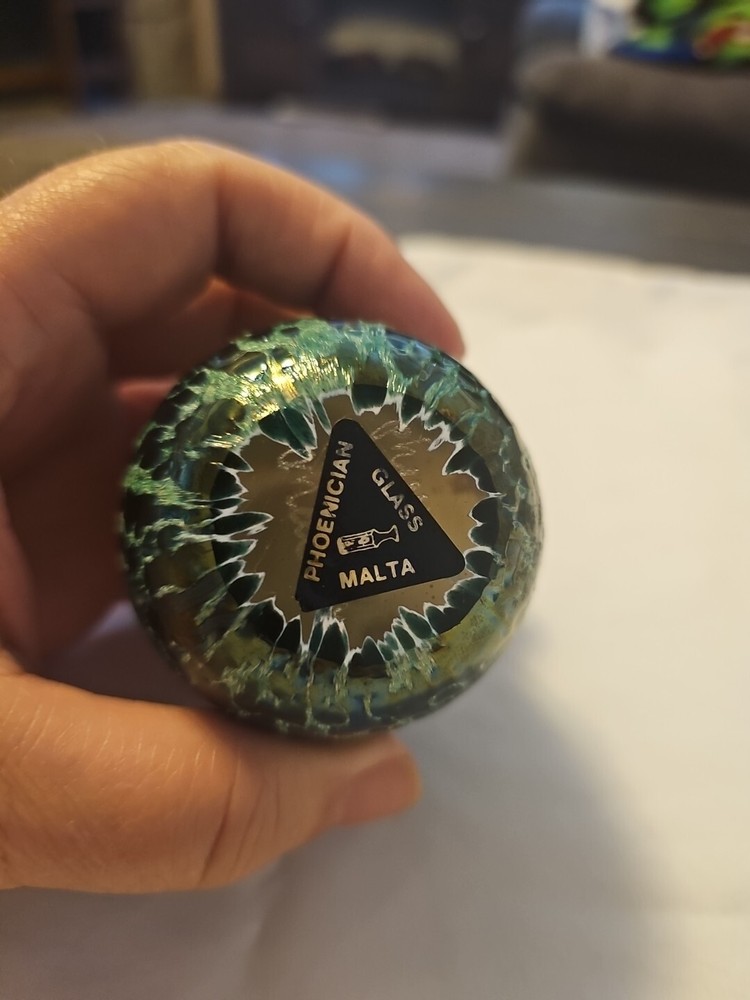PHOENICIAN GLASS MALTA IRIDESCENT EGG SHAPED PAPERWEIGHT - 3". Condition is Used. Shipped with USPS Ground Advantage.