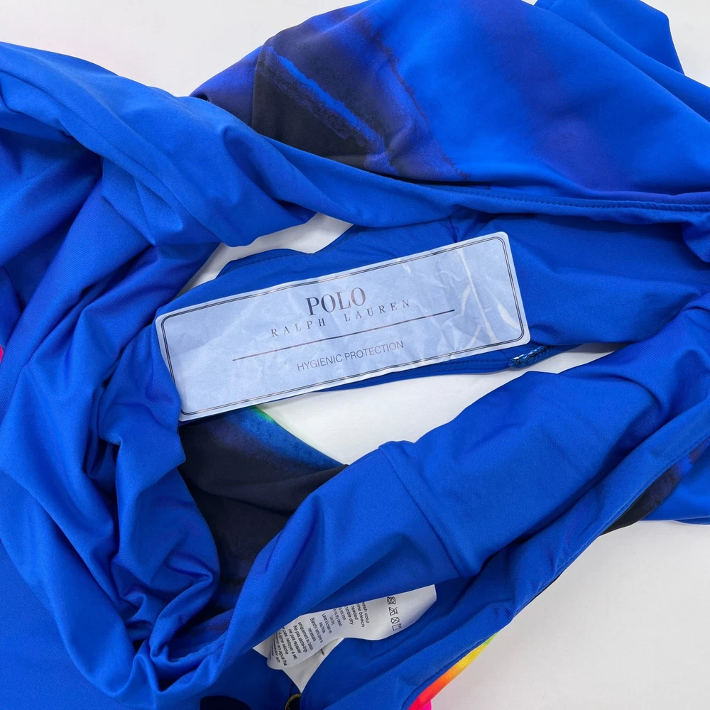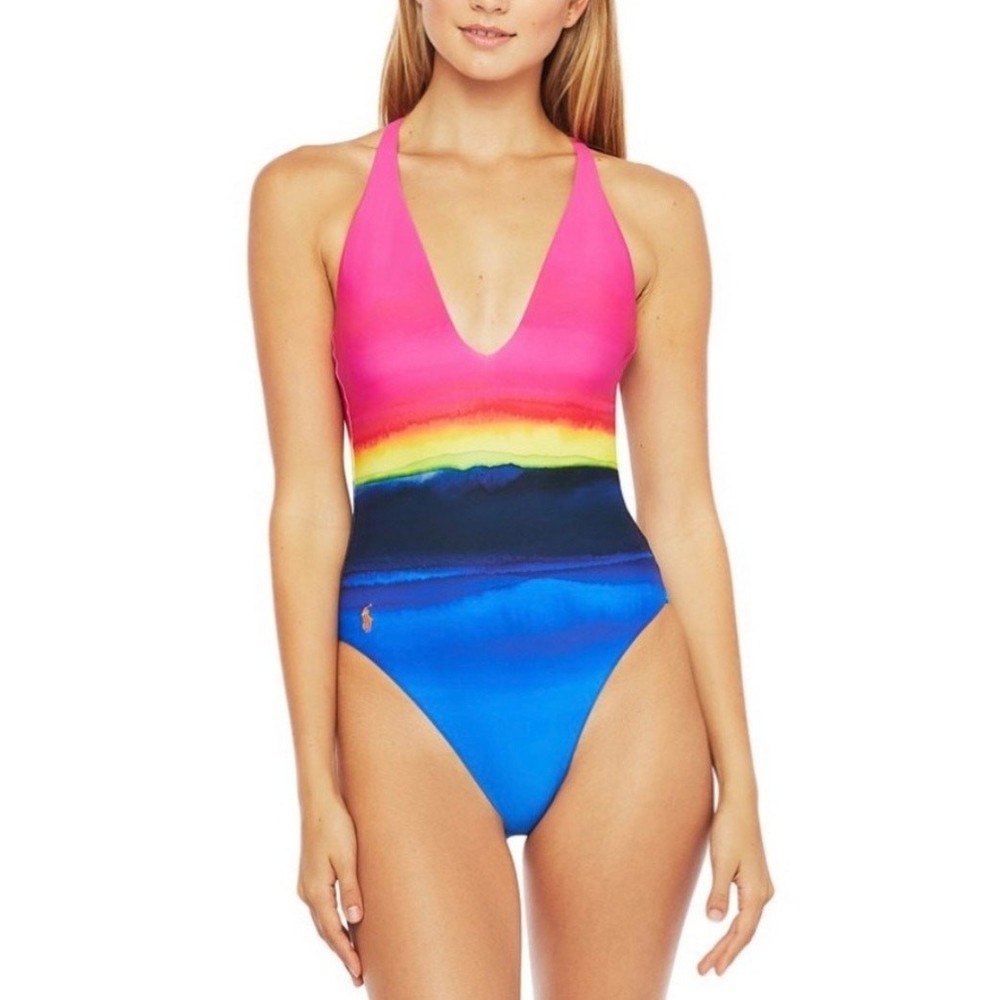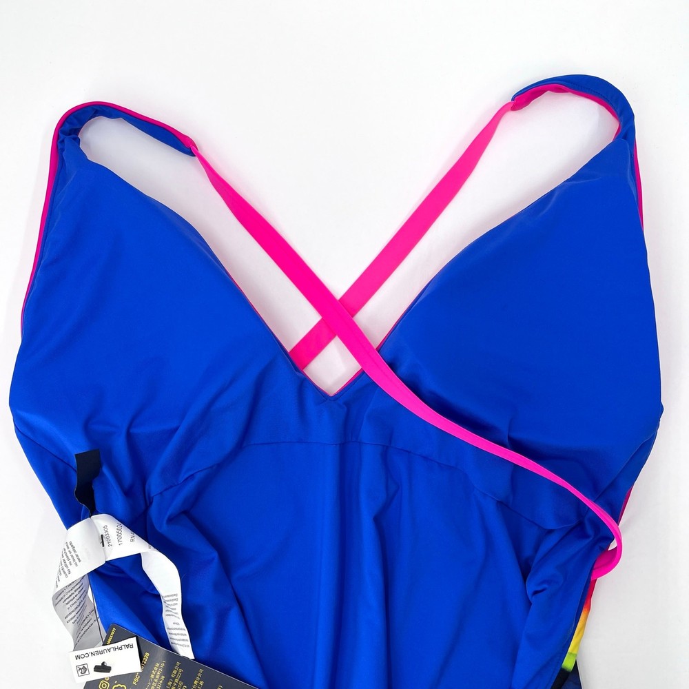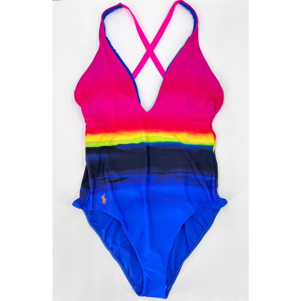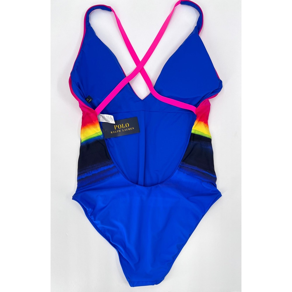 <![CDATA[<div>POLO RALPH LAUREN Dip Dyed One Piece Swimsuit Womens Large Blue Pink Cross Back Plunging v-neck Criss cross back Lined Retail $124 CONDITION: New with tags, no flaws COLOR: Blue, pink MATERIAL: Nylon, elastane Bust 15" Waist 13.5" Hip 14.75" Length 28" - All measurements are taken flat across one side(unless otherwise noted), please double to get the measurement all the way around - Measurements are approximate, please review prior to purchase to help ensure proper fit - Color may vary with device and lighting - Please review all photos thoroughly - I'm happy to combine shipping for multiple items - All orders are shipped within 24hrs, most shipped same or next business day - Feel free to ask questions