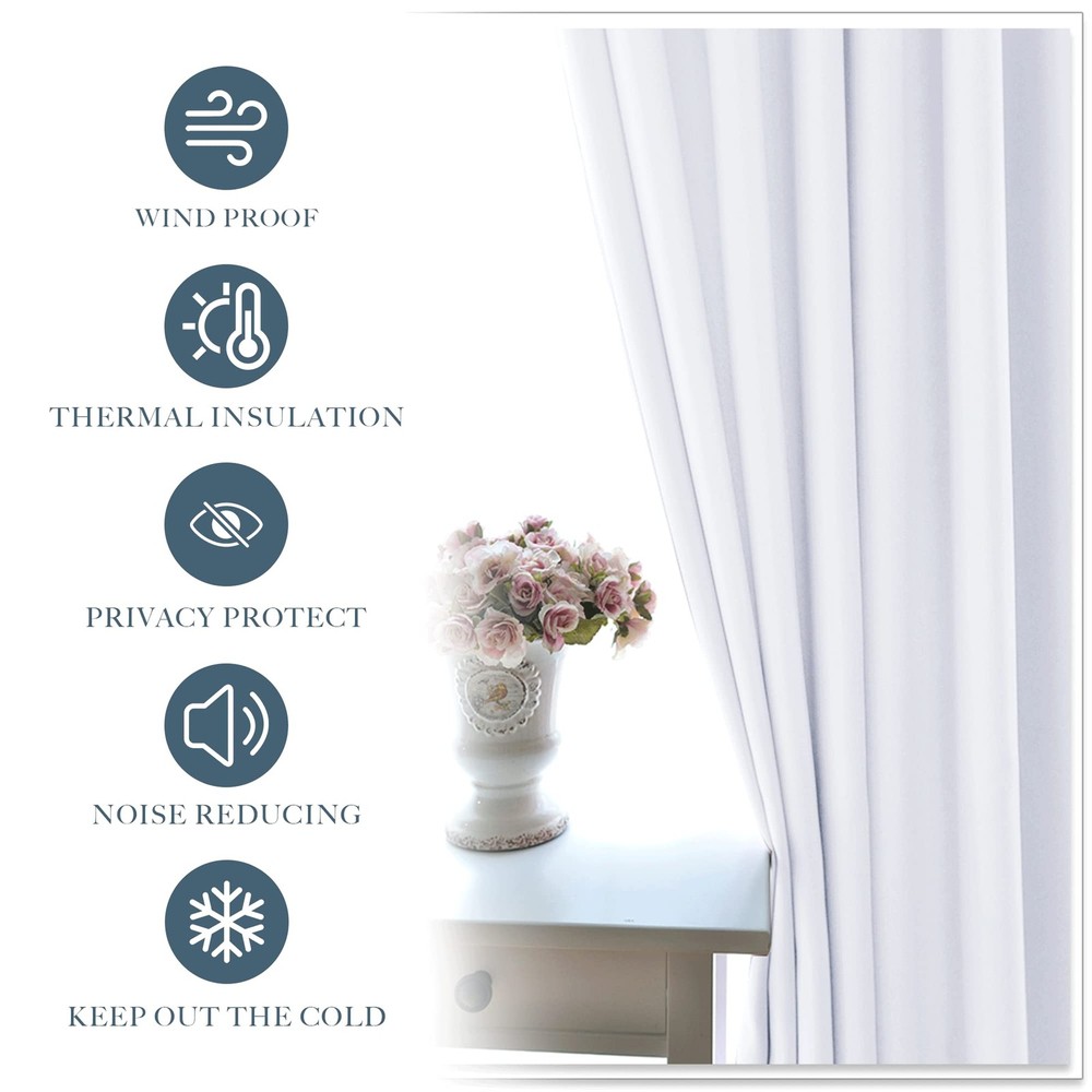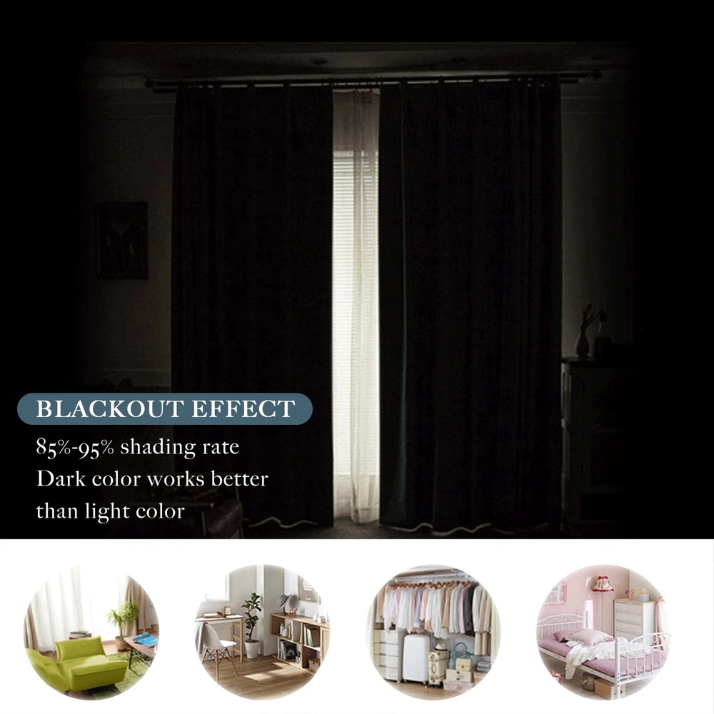 Product Page PONY DANCE Bedroom Window Curtains - Home Decor Thermal Curtain Panels Description: Features: Ready Made - 2 pieces of heavy-duty blackout curtains includes, each measures 42" wide x 63" Long(Total width is 84").3" rod pocket top fits most standard rods and makes the maximum coverage of windows Versatile Styles - Dual header(Back Tab and Rod Pocket) enable you to decorate your home with different styles according to your preference. Curtains can be styled in 3 ways: back Loops, rod pocket or with your clip-rings Innovative Fabric - PONY DANCE blackout curtains with no liner feature triple-weaved fabric construction. The curtains block 50% - 60% of sunlight due to different colors (Dark color works better) and it also blocks UV rays MULTI-FUNCTION: The blackout curtains can help with energy efficiency, reduce noise and offer privacy, especially fit for windows facing the street or neighbors. What's more, the physical shading cloth is environmentally friendly and good for health More Choice - Different styles of items in the same color and material are available, which is perfect for home design. Start your journey of discovery now