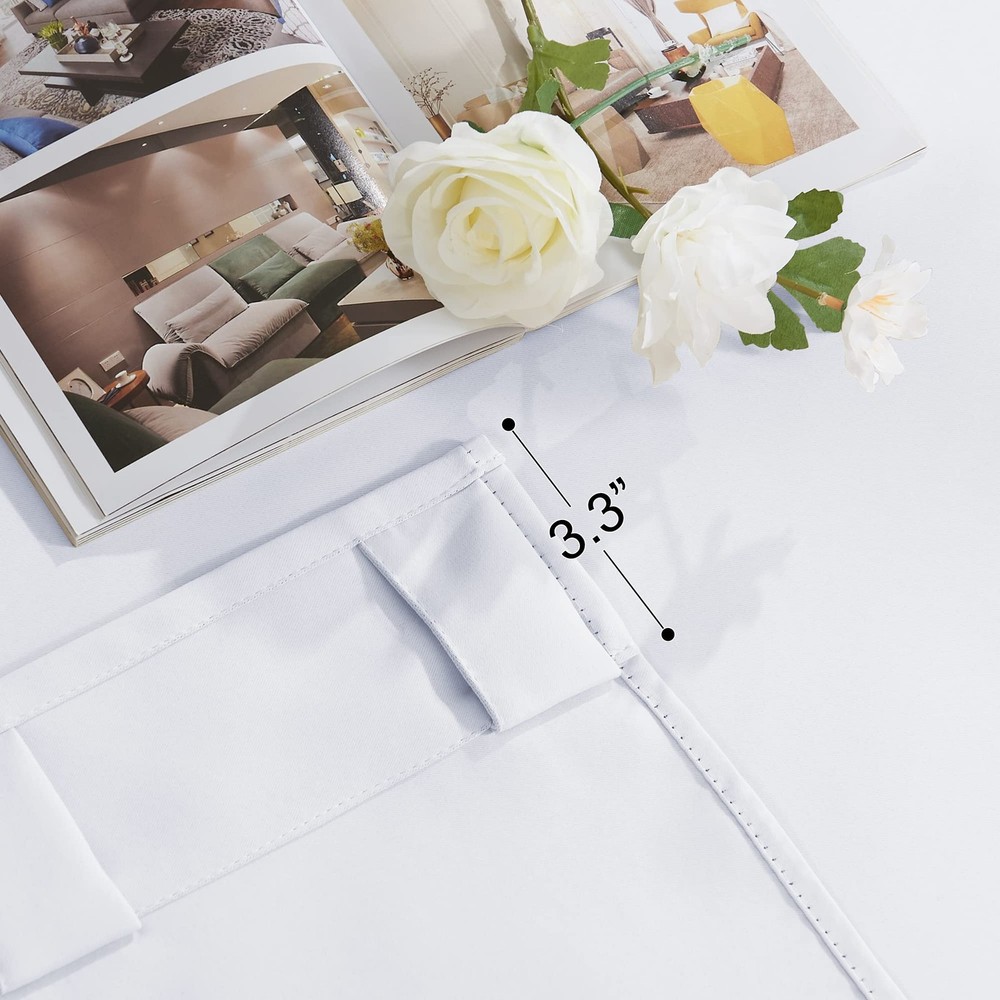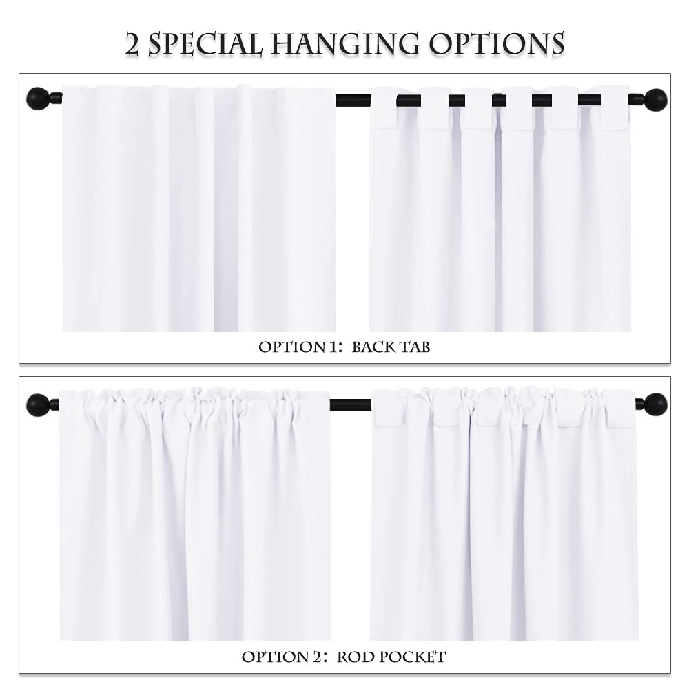 Product Page PONY DANCE White Curtains 72 inch - Light Filter Window Thermal Curtai Kitchen Description: Features: Ready Made - 2 panels of Heavy-duty blackout curtains includes, each measures 52" wide x 72" Long(total width - 104").3" rod pocket top fits most standard rods and makes the maximum coverage of windows Versatile Styles - Dual header(Back Tab and Rod Pocket) enable you to decorate your home with different styles according to your preference. Curtains can be styled in 3 ways: back Loops, rod pocket or with your clip-rings Innovative Fabric - PONY DANCE blackout curtains with no liner feature triple-weaved fabric construction. The curtains block 50% - 60% of sunlight due to different colors (Dark color works better) and it also blocks UV rays MULTI-FUNCTION: The blackout curtains can help with energy efficiency, reduce noise and offer privacy, especially fit for windows facing the street or neighbors. What's more, the physical shading cloth is environmentally friendly and good for health More Choice - Different styles of items in the same color and material are available, which is perfect for home design. Start your journey of discovery now