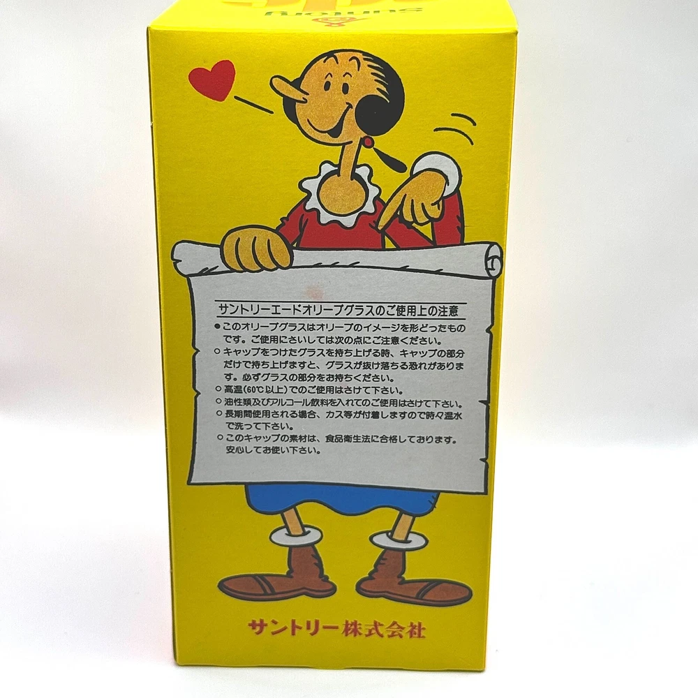 Discription Anime POPEYE/vintage OLIVE glass/suntory ade original/Japan1980s/ hat-shaped lid This was not for sale at the time and was sent down to the vendor! Condition New (Old Stock) **Description:** This item is brand new and has never been used. It has been stored in a warehouse for an extended perio d. Please note that due to long-term storage, the packaging may show signs of wear, such as minor scratches or discoloration. The item itself remains in perfect condition and is fully functional. **Additional Information:** - **Vintage/Retro:** This item is a retro piece, reflecting the design and style of its era. - **Packaging:** Original packaging included, but it may have some wear due to storage. - **Functionality:** The item has been tested and is in full working order. - **Photos:** Please refer to the photos for a detailed view of the item's condition. Cancellations & Returns Cancellation is not possible unless there is obvious damage or cracking. Even in the case of clear damage, you must be informed within two days of arrival. International Buyers - Please Note: Import duties, taxes and charges are not included in the item price or shipping charges. These charges are the buyer's responsibility. Please check with your country's customs office to determine what these additional costs will be prior to bidding/buying. These charges are normally collected by the delivering freight (shipping) company or when you pick the item up - do not confuse them for additional shipping charges.