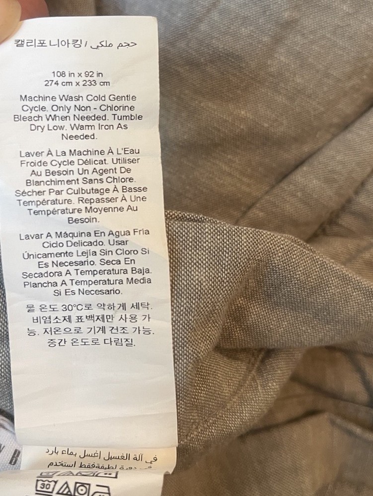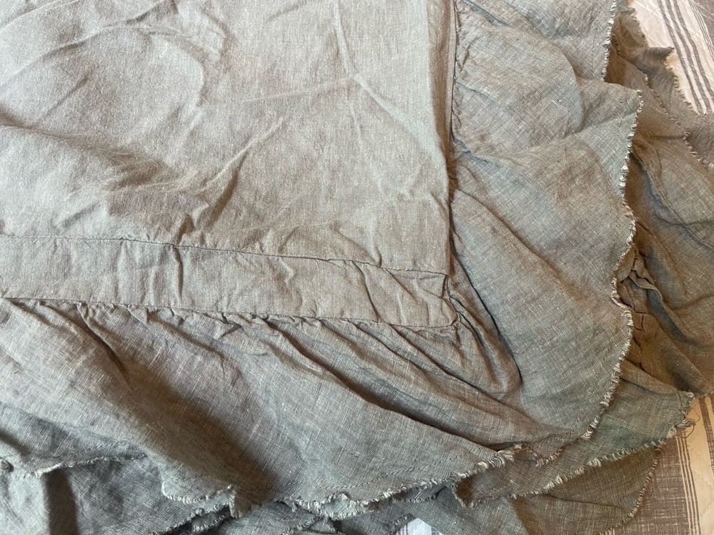 The Pottery Barn 100% Flax Linen Fringe Ruffle Edge Duvet Cover in Flagstone Grey is a stylish addition to any bedroom. Made from high-quality linen, this duvet cover is not only comfortable but also features a ruffled edge for added texture and interest. The solid gray color adds a modern touch to the bedroom decor, while the king size ensures a cozy fit for a standard king bed. Perfect for those looking to add a touch of elegance to their bedroom, this duvet cover is both fashionable and practical.