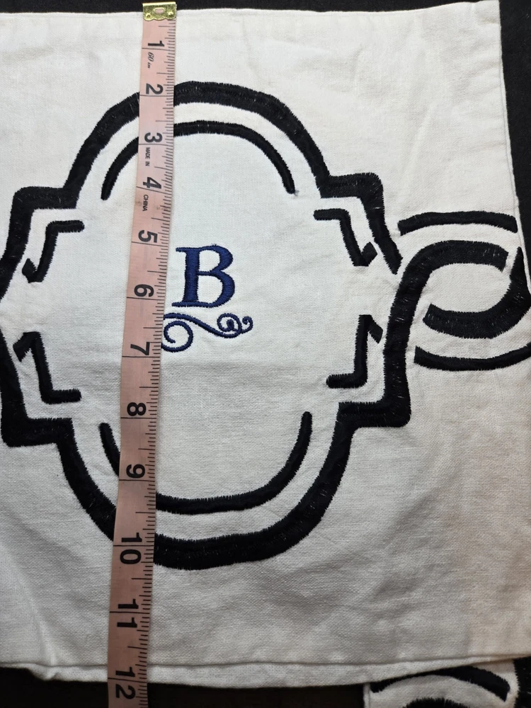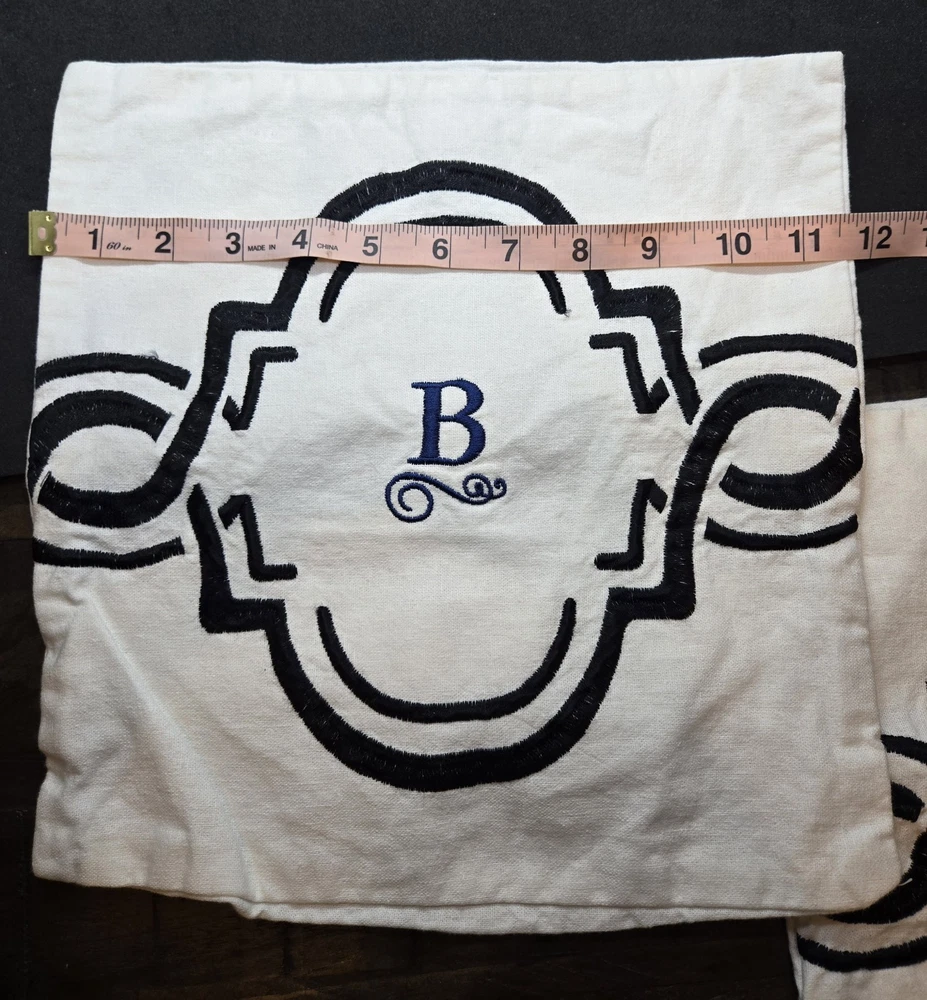 The Pottery Barn White Linen Blend Monogram "B" Pillow covers are elegant and stylish square-shaped pillow covers made from a luxurious linen blend material. Measuring 12 x 12 inches, these white pillow covers feature a solid pattern and the letter "B" monogram, adding a personal touch to any room in your home. Made by Pottery Barn, known for their quality and timeless designs, these pillow covers are a perfect addition to your home decor.