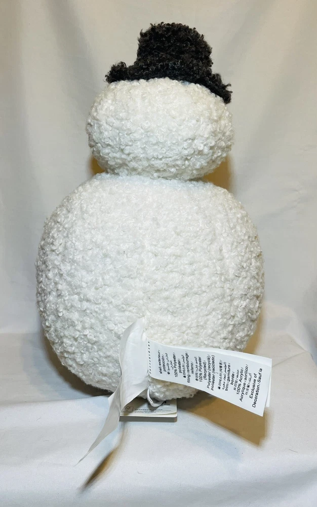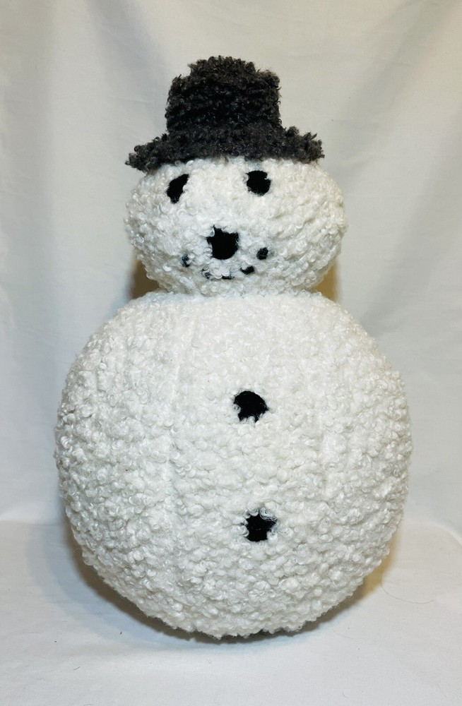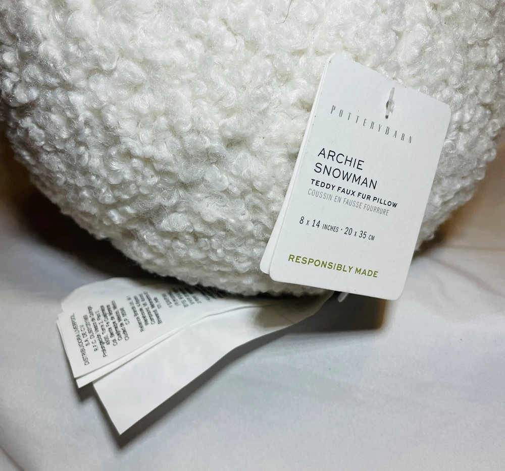 POTTERY BARN ARCHIE THE SNOWMAN Teddy Faux Fur Pillow Has Original Tags but missing the scarf. Great for Christmas or Winter Decor ~9”x 14" ADORABLE