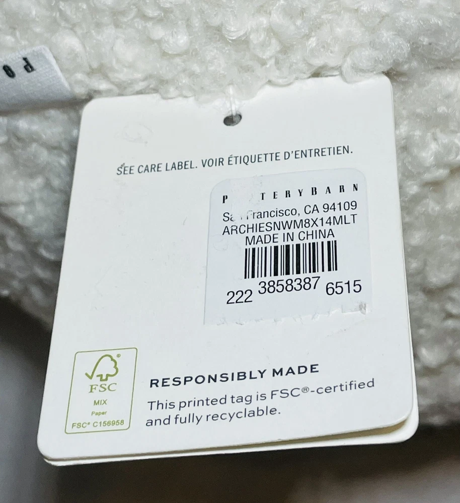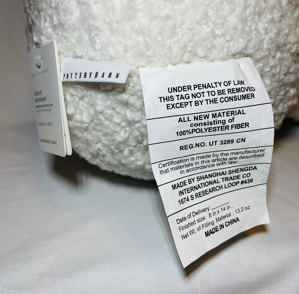 POTTERY BARN ARCHIE THE SNOWMAN Teddy Faux Fur Pillow Has Original Tags but missing the scarf. Great for Christmas or Winter Decor ~9”x 14" ADORABLE...