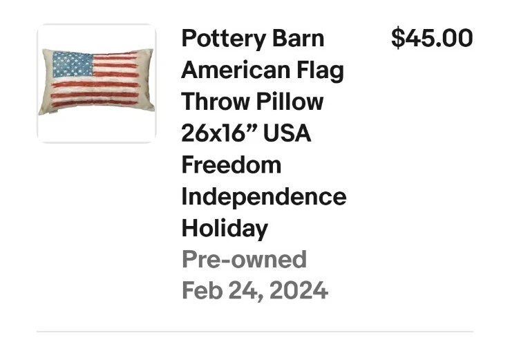 I do not mind answering questions, however 99% of the 40+ questions I get every day can be answered by reading the description & looking at ALL the pics. If you don't see measurements in the description or pics they are under ABOUT THIS ITEM. I want to spend more time hunting for the great items you see in my store. HAPPY SHOPPING!! 🇺🇸POTTERY BARN American Flag Lumbar Pillow PATRIOTIC AMERICANA JULY 4th EUC This is not a cover. It's a full pillow. There is no zipper to remove it. This is in excellent used condition. Smoke-free, pet free home. 24" x 14"