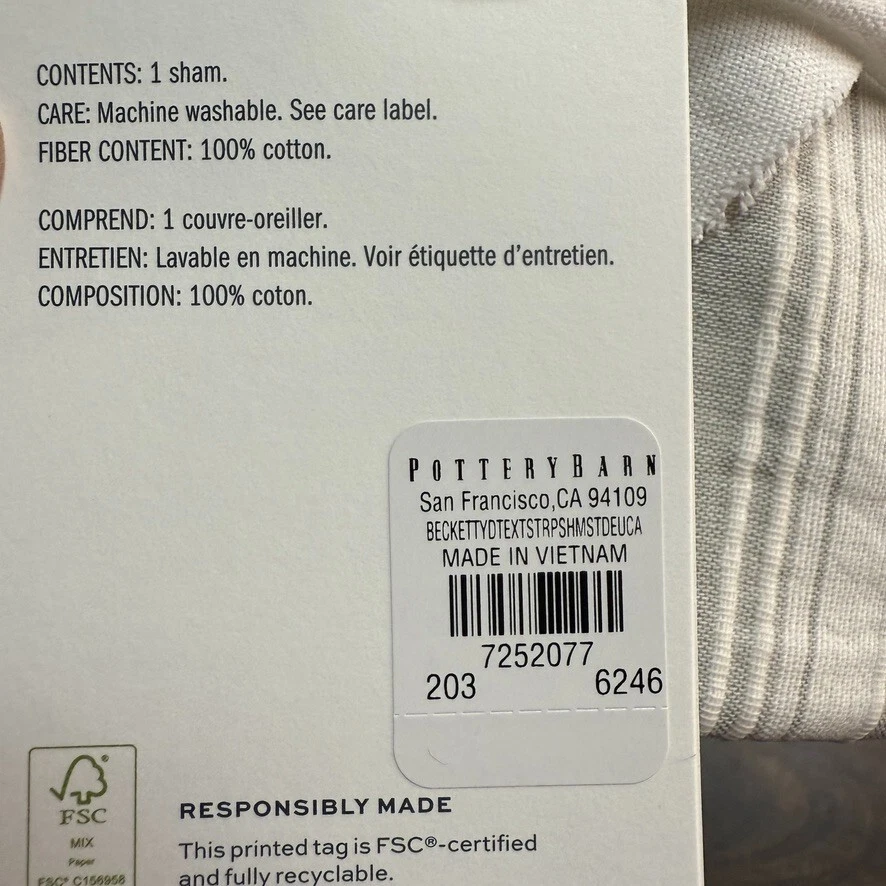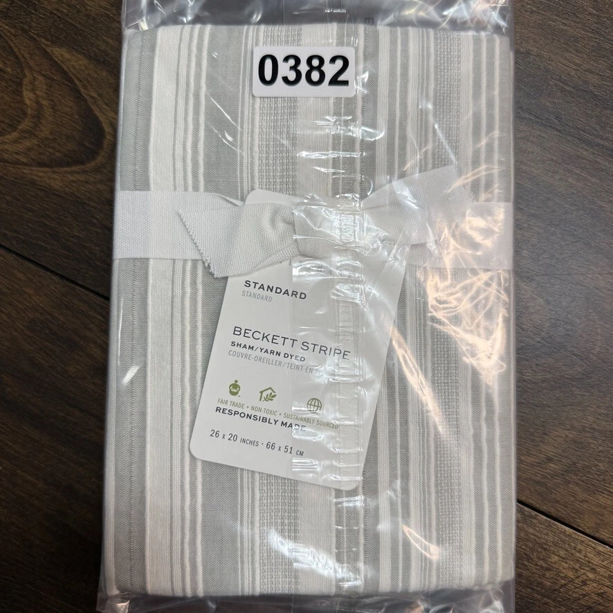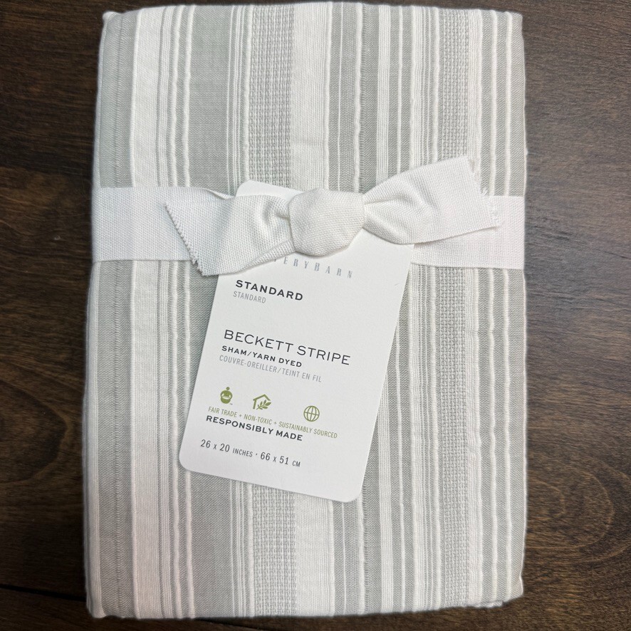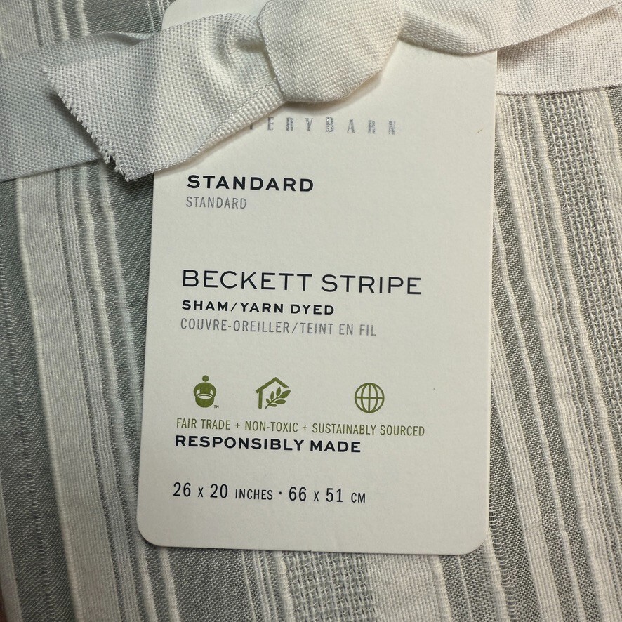 Pottery Barn Standard Beckett Yarn Dye Textured Striped 1-Sham 26" x 20" Eucalyptus Add a touch of contemporary style to your bedroom with this Pottery Barn Beckett Striped pillow sham. The rectangular sham is made of 100% cotton and features a striped pattern in eucalyptus color. It is machine washable and has no closure for easy installation. This standard size sham measures 26" in width and 20" in length, making it suitable for both teens and adults. The Beckett Striped theme adds character to your bedroom and complements any decor. Care instructions include machine washable. Shipping & handling: We ship same or next day. Large comforters & quilts are vacuum packed with a reusable storage bag to save shipping cost and preserve the item. Questions: Please reach out. We respond very quickly. We strive for 5-star service in our product quality, shipping speed & customer service. We know you have many choices on eBay and appreciate that you have chosen to shop with us. Zoe's Castle | eBay Stores