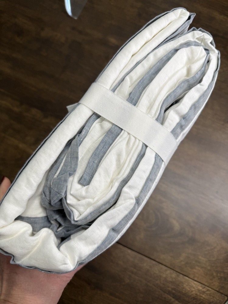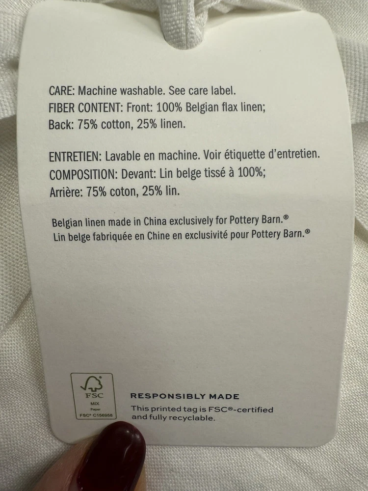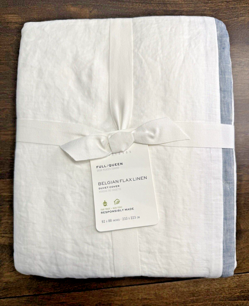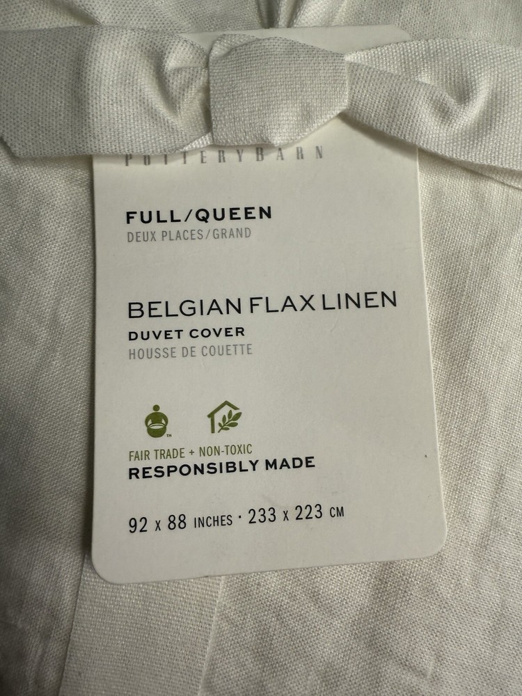The finishing touch to a perfectly layered bed: Our contrast flange bedding adds a refined edge to an otherwise relaxed look. Woven from the world’s finest Belgian flax, it’s prewashed for incredible softness. What we love most about linen is it keeps you cool when it’s warm and warm when it’s cool. Details Material: Linen woven from 100% Belgian flax linen. Reverses to 75% cotton and 25% linen, prewashed for a super soft hand-feel. Temperature Regulation: Ideal for warm or cool temperatures. Secure Design: Duvet features a hidden button closure with inner ties to keep the insert in place; sham features an overlap envelope closure. Certification and Standards: STANDARD 100 by OEKO-TEX Care Instructions Linen will get softer with every wash. Machine wash in cold water separately on gentle cycle. Use only non-chlorine bleach, if needed. Line or tumble dry on a low temperature. Dimensions Full/Queen: 88" l x 92" w Shipping & handling: We ship same or next day. Large comforters & quilts are vacuum packed with a reusable storage bag to save shipping cost and preserve the item. Questions: Please reach out. We respond very quickly. We strive for 5-star service in our product quality, shipping speed & customer service. We know you have many choices on eBay and appreciate that you have chosen to shop with us. Zoe's Castle | eBay Stores