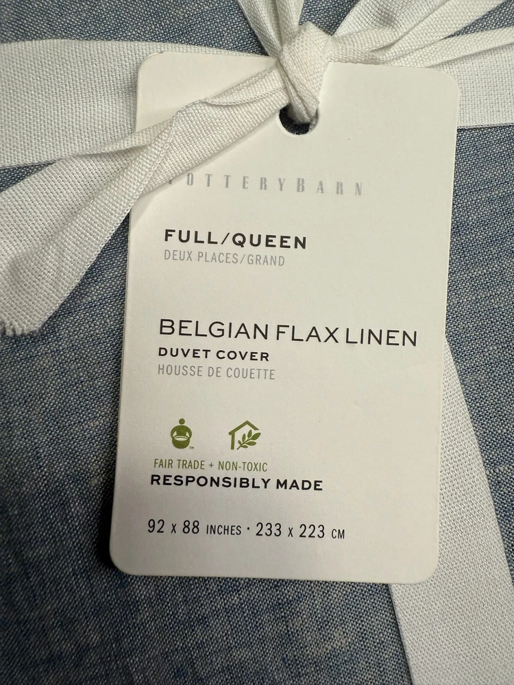 Construction Linen woven from 100% Belgian flax. Reverses to same. Prewashed for a supersoft hand feel. Ideal for warm or cool temperatures. OEKO-TEX® STANDARD 100: tested for 1000+ harmful substances. 14.HUS.42449 HOHENSTEIN HTTI. Duvet features a hidden button closure with inner ties that keep insert in place; sham features an envelope closure. Color variations are inherent to natural fibers and slight variations may occur to what is shown online. Care Linen will get softer with every wash. Machine wash in cold water separately on gentle cycle. Use only non-chlorine bleach, if needed. Line or tumble dry on a low temperature. Warm iron as needed. Dimensions Full/Queen Duvet: 88" l x 92" w Shipping & handling: Large comforters & quilts are vacuum packed with a reusable storage bag to save shipping cost and preserve the item. Questions: Please reach out. We respond very quickly. We strive for 5-star service in our product quality, shipping speed & customer service. We know you have many choices on eBay and appreciate that you have chosen to shop with us. We have a variety of new and used items for whole family! Please check out our store and be sure to add us as a favorite seller. Zoe's Castle | eBay Stores