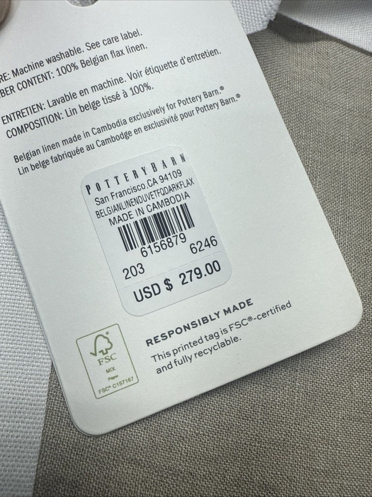 POTTERYBARN FULL/QUEEN BELGIAN FLAX LINEN DUVET COVER...