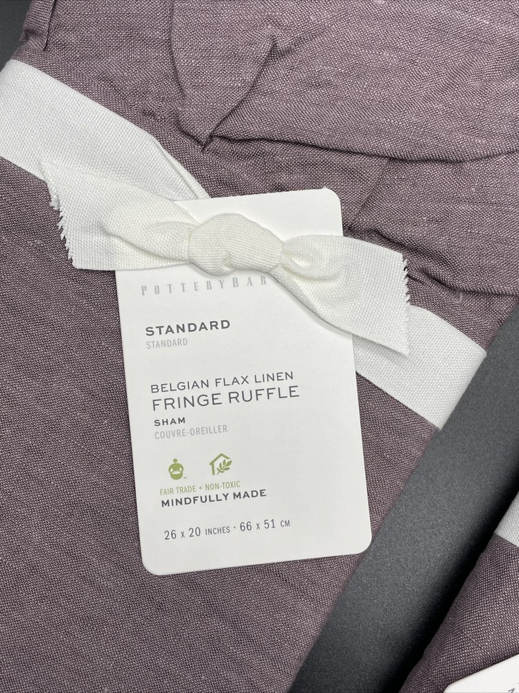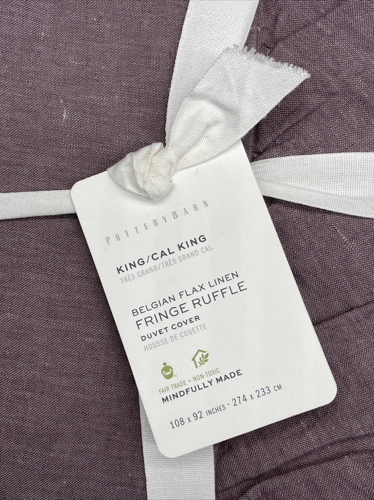 Pottery Barn Belgian Flax Linen Fringe Ruffle Duvet & Shams Duvet: King / Cal King 2 Standard Shams Color: Fig Brand new, mint condition, with tags, smoke free & pet free home. Please visit their website for more detailed photos of the color Retail: $510