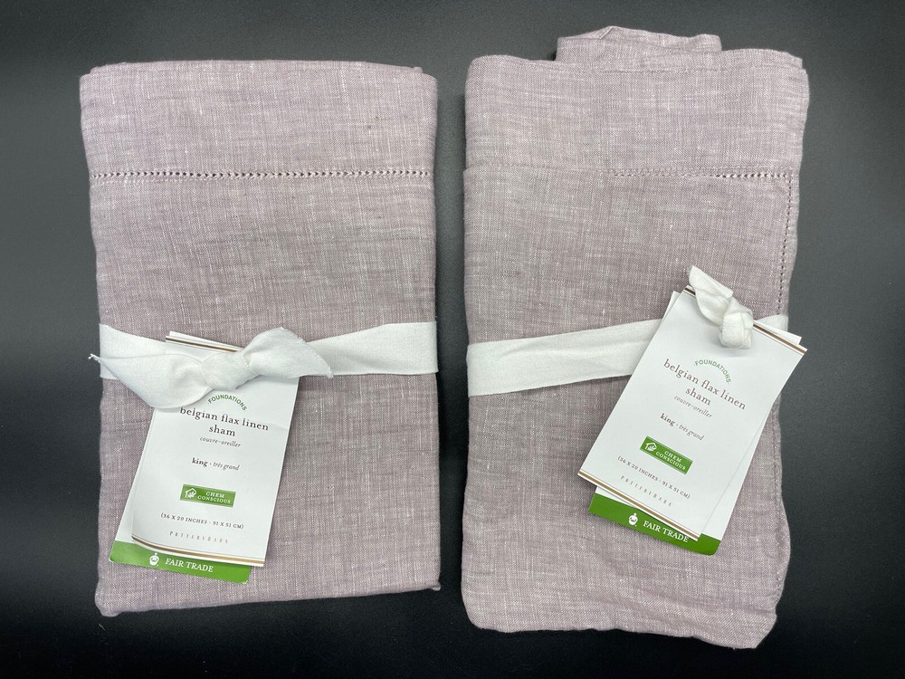 Pottery Barn Belgian Flax Linen Duvet & Shams Duvet: King / Cal King 2 King Shams Color: Lavender The duvet is missing the tag but is still brand new Brand new, mint condition, with tags, smoke free & pet free home. Please visit their website for more detailed photos of the color Retail: $430